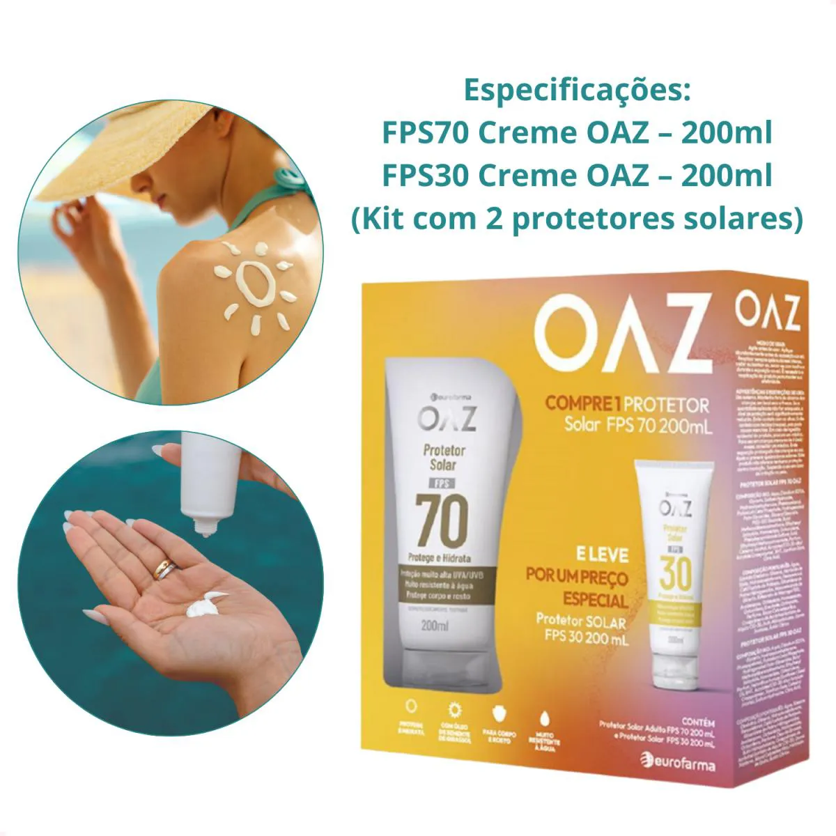 Kit com 2 Kit Protetor Solar Oaz Fps 70 200Ml + Fps 30 200Ml