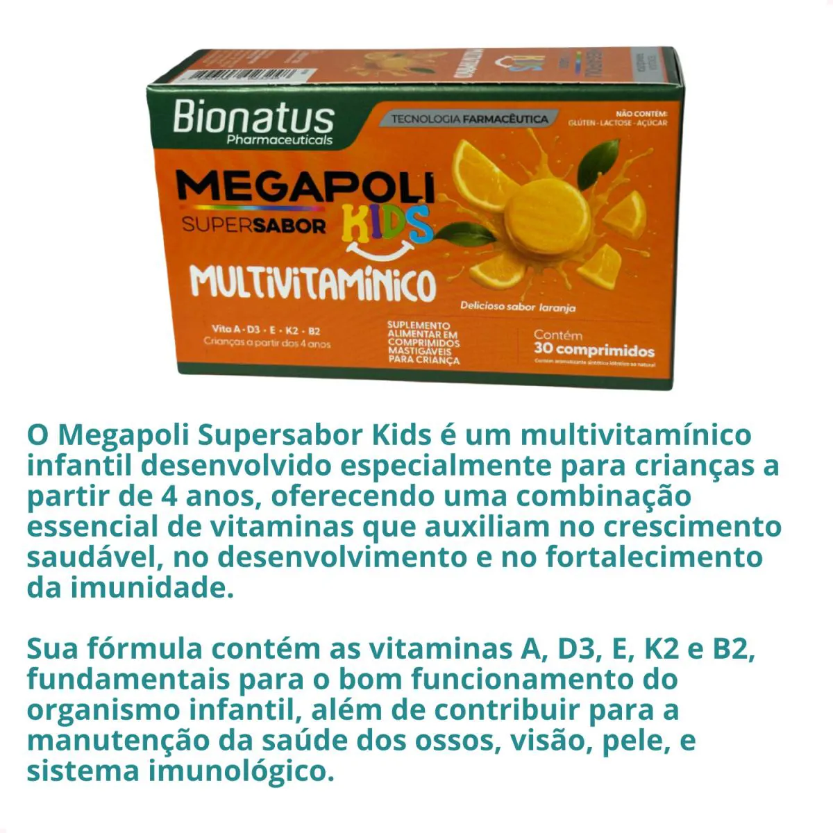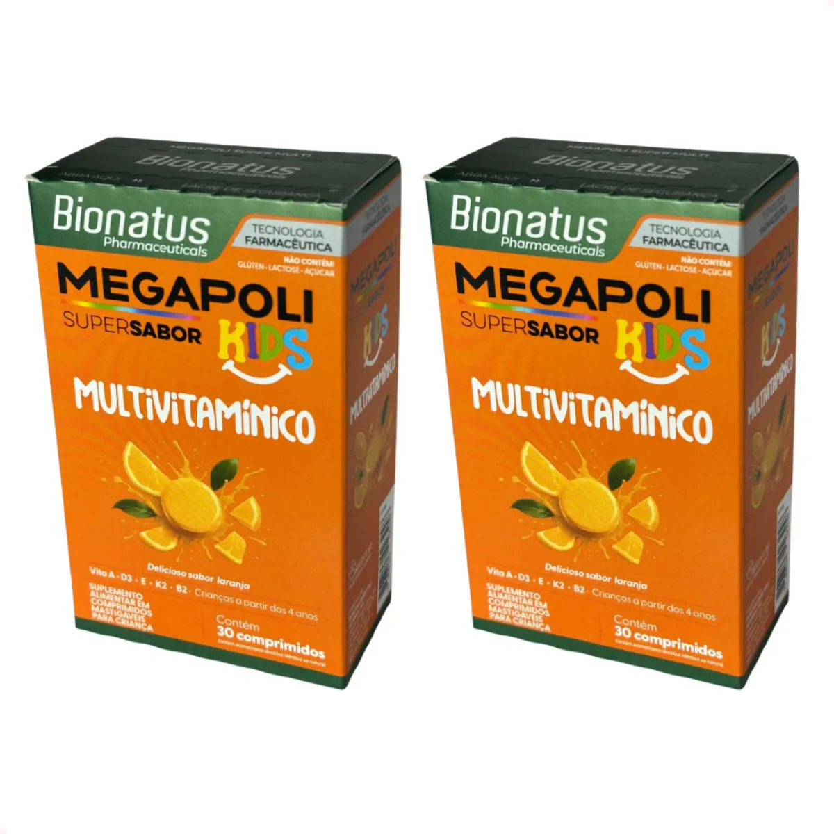 Kit com 2 - Megapoli Kids Multivitaminico Sabor Laranja - 30 Comprimidos