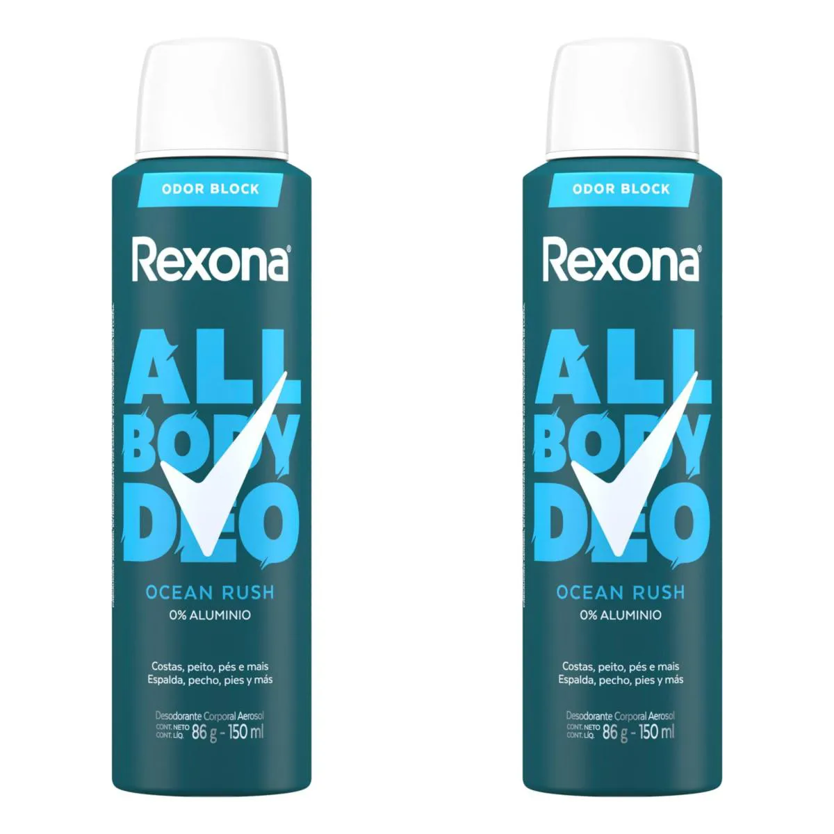 Kit com 2 Unidades de Desodorante Aerossol Rexona All Body Deo Ocean Rush 150Ml