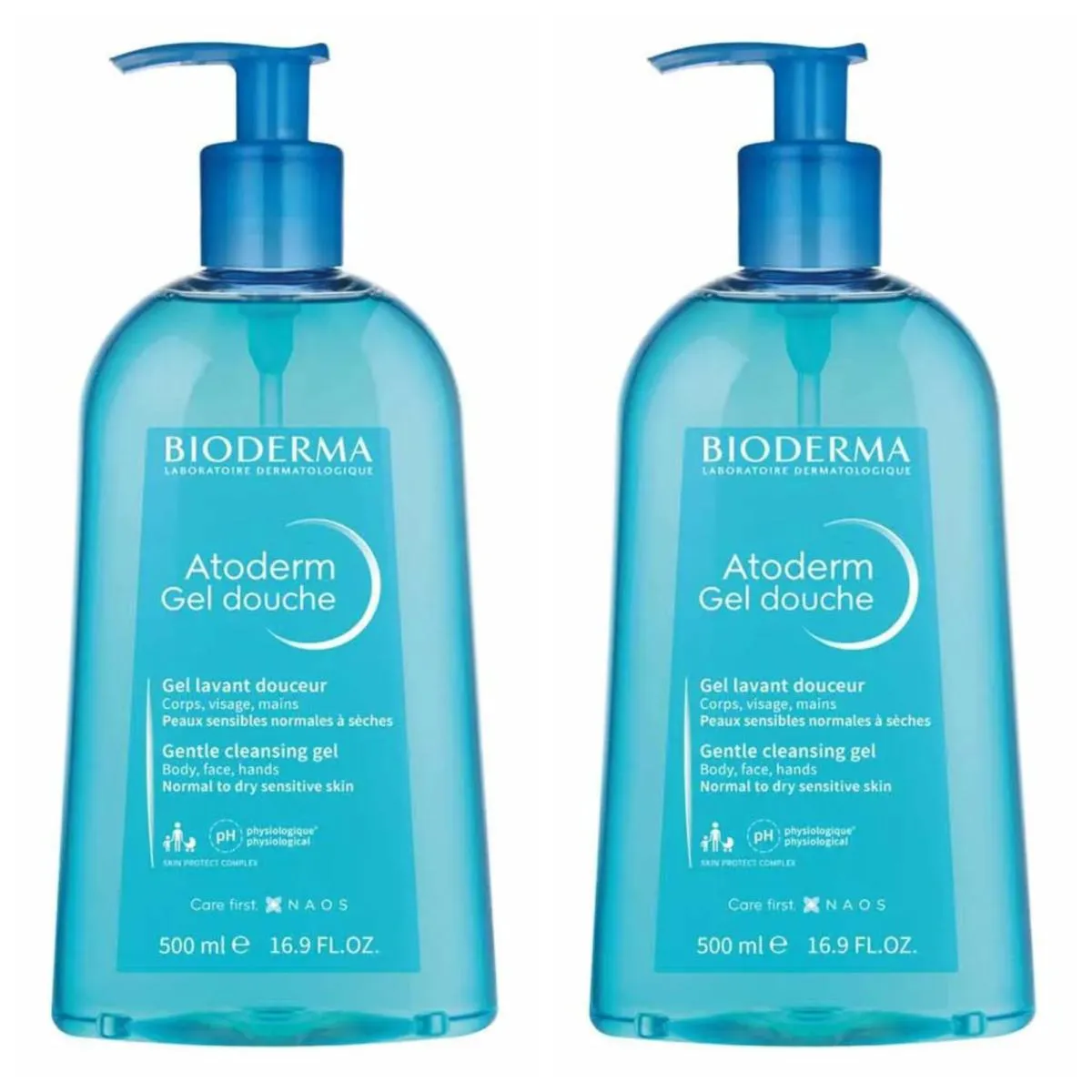 Kit com 2 Unidades de Gel de banho Corporal hidratante Bioderma Atoderm 500ml.