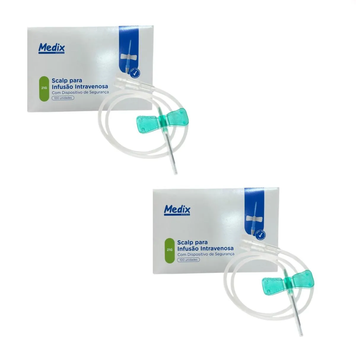 Kit com 200 Scalp nº 21G da Medix Com Dispositivo Segurança