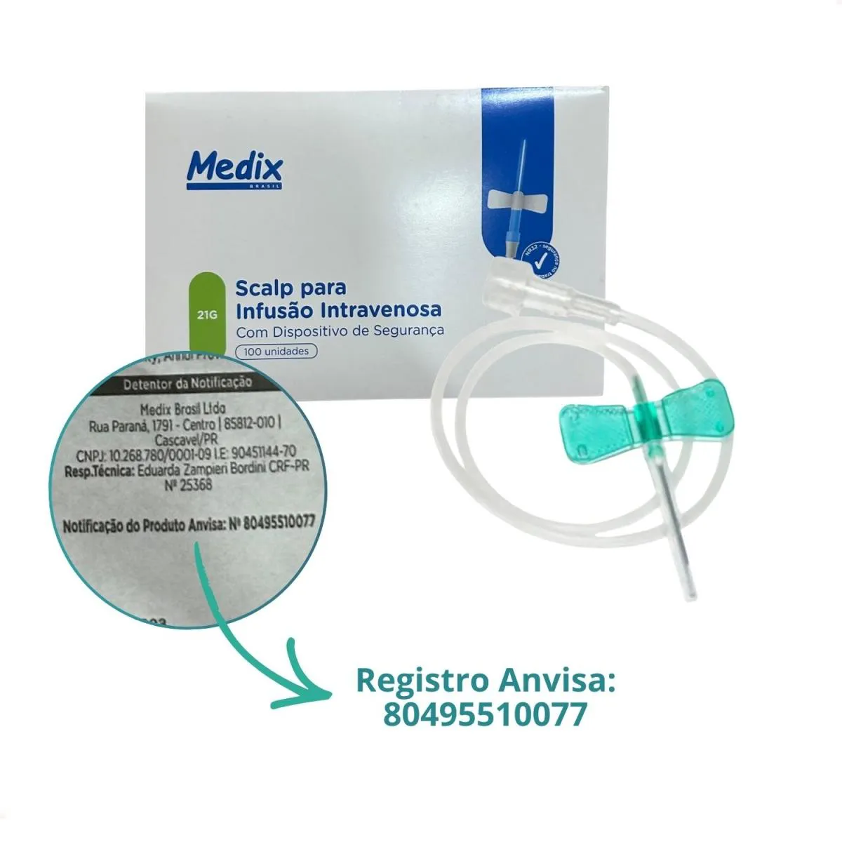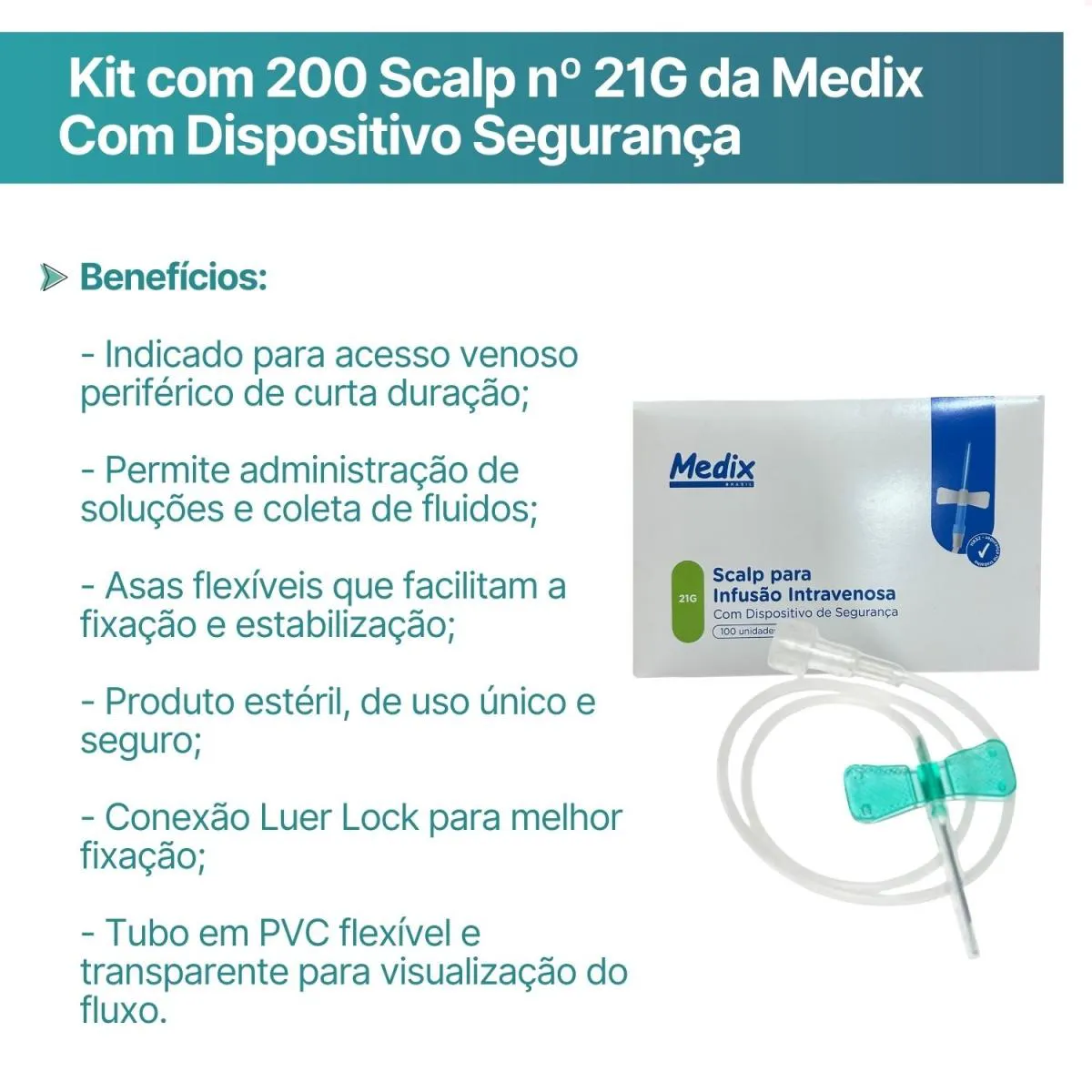 Kit com 200 Scalp no 21G da Medix com Dispositivo Segurança