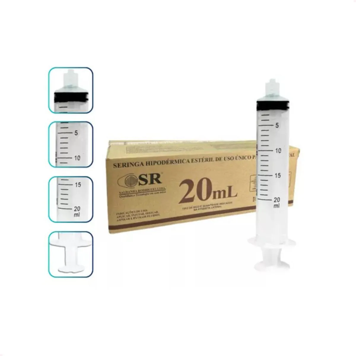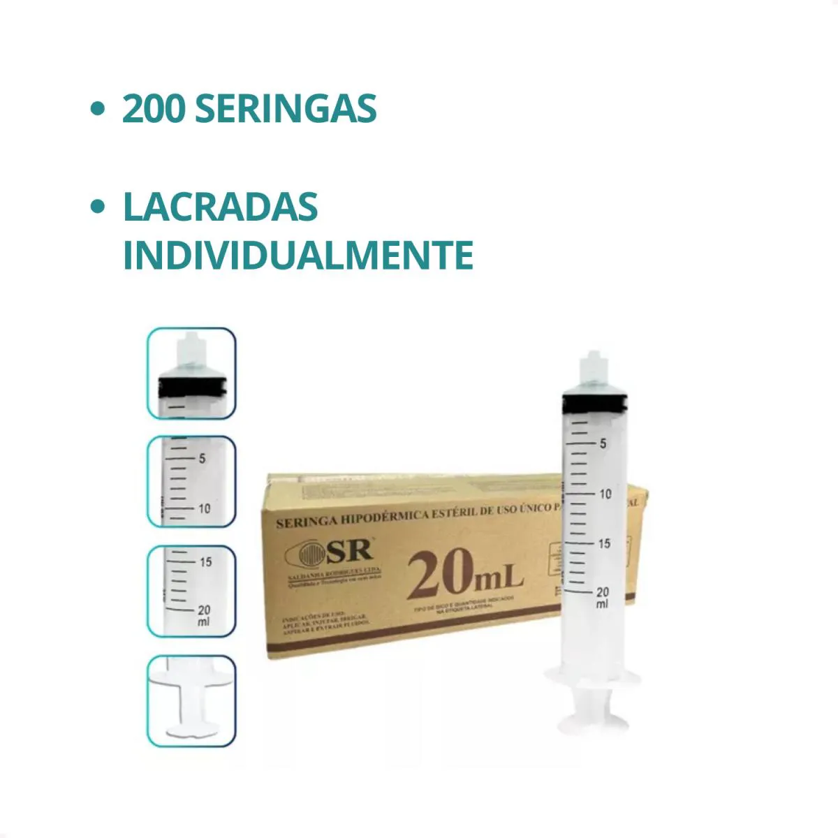 Kit com 200 Seringa 20 Ml Descartaveis Sem Agulha Luer Lock