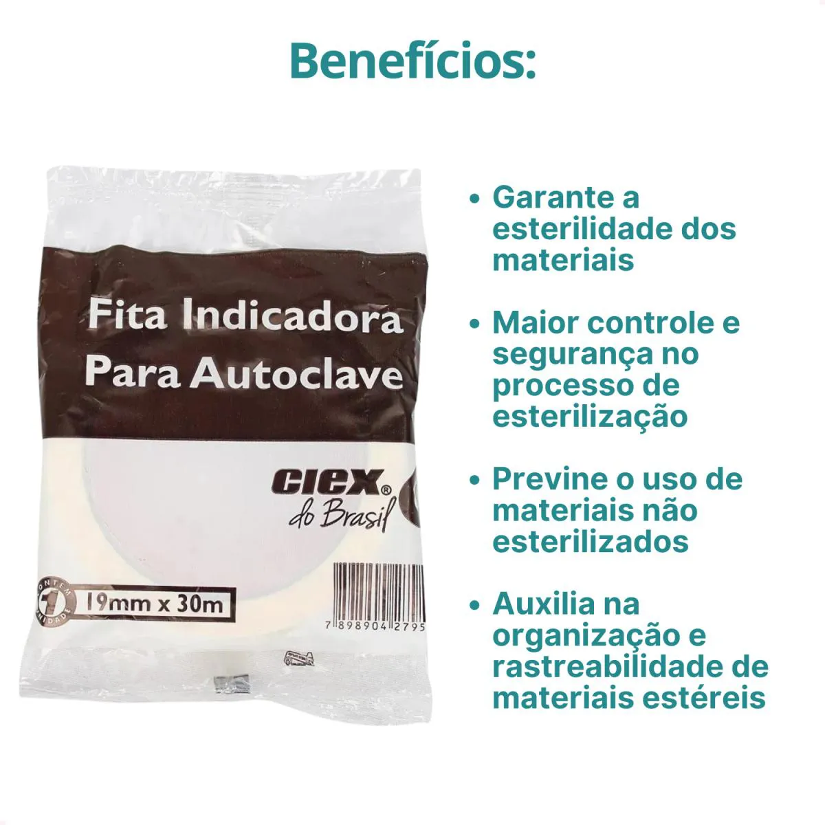 A Fita Adesiva Indicadora para Autoclave CIEX é um produto utilizado para marcar pacotes e materiais que serão submetidos ao processo de autoclavagem.
