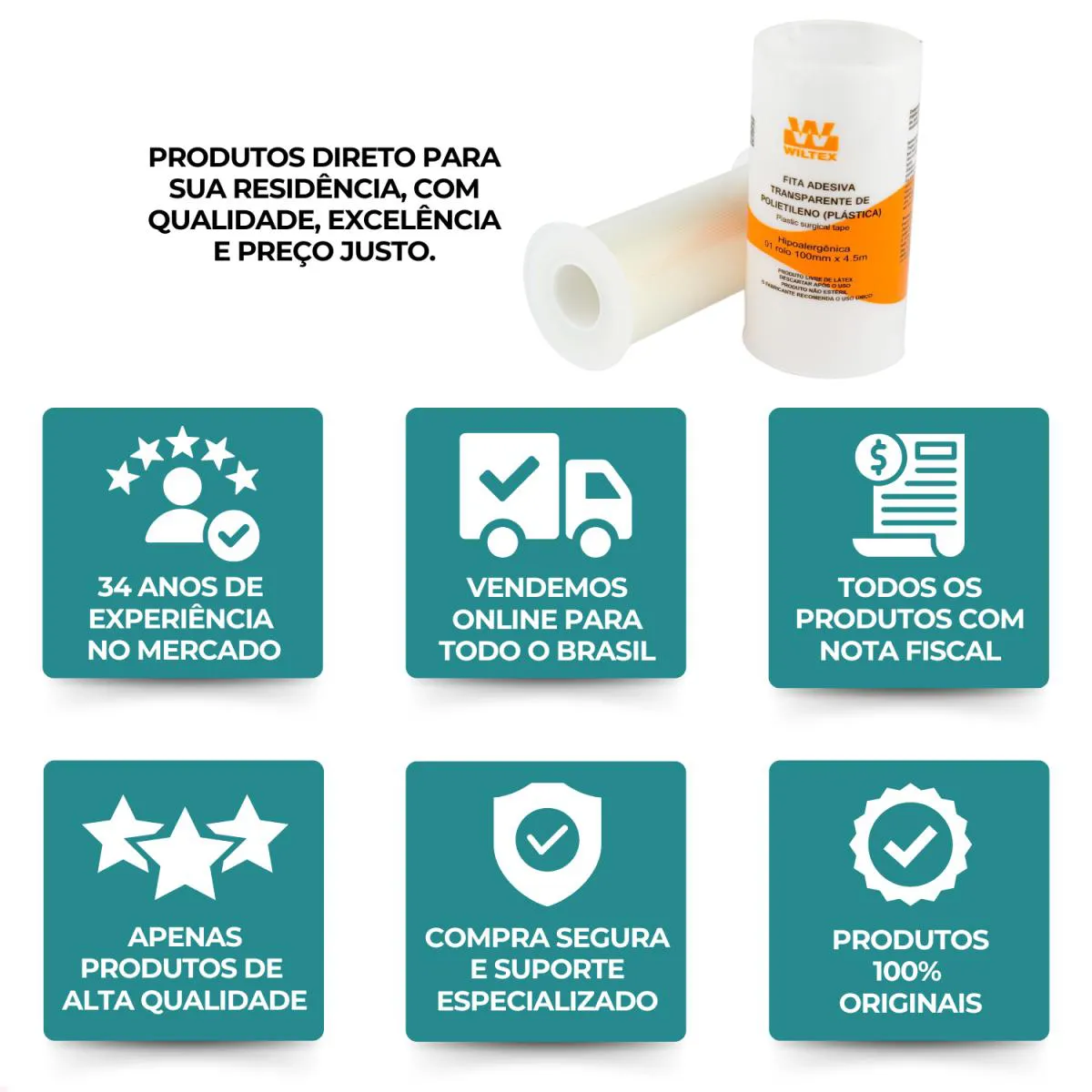 A Fita adesiva Wiltex é ideal para fixação de curativos, cateteres e sondas.