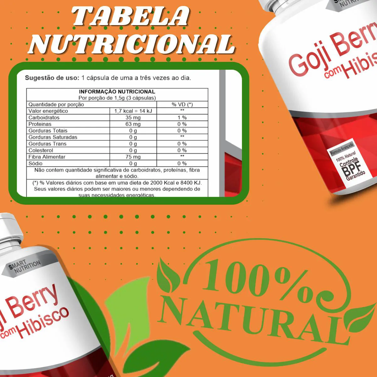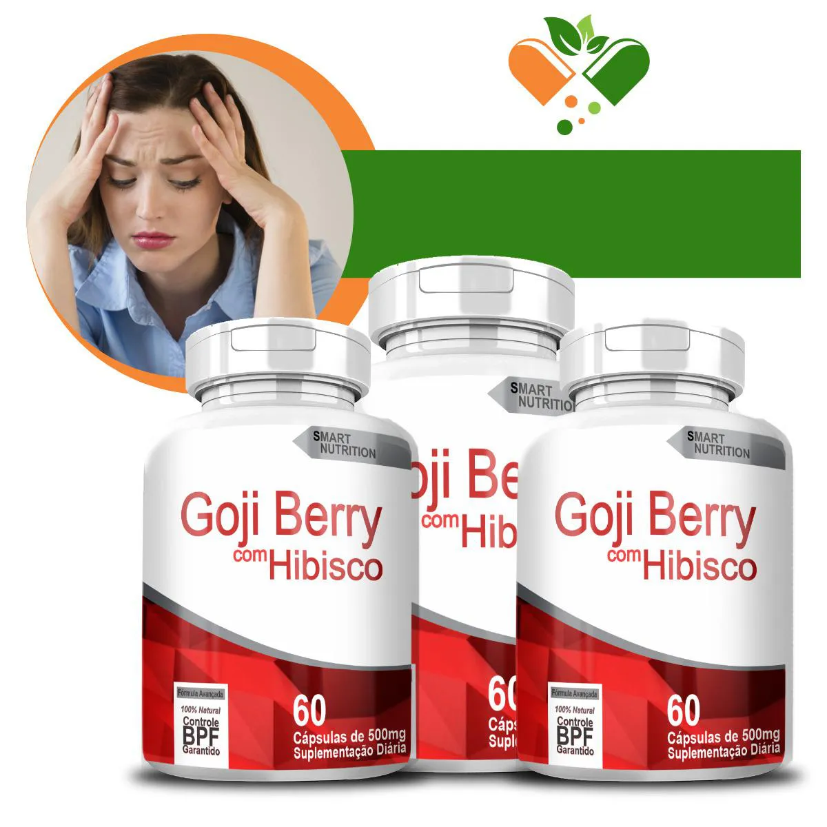 KIT COM 3 POTES GOJI BERRY COM HIBISCO 500MG 60 CáPSULAS
