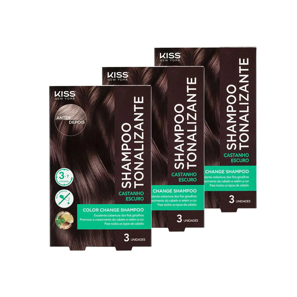 Kit com 3 Shampoos Tonalizantes Color Change Castanho Escuro - Kiss New York