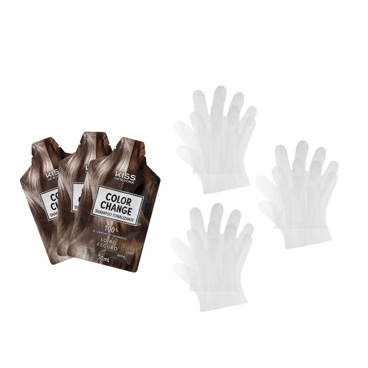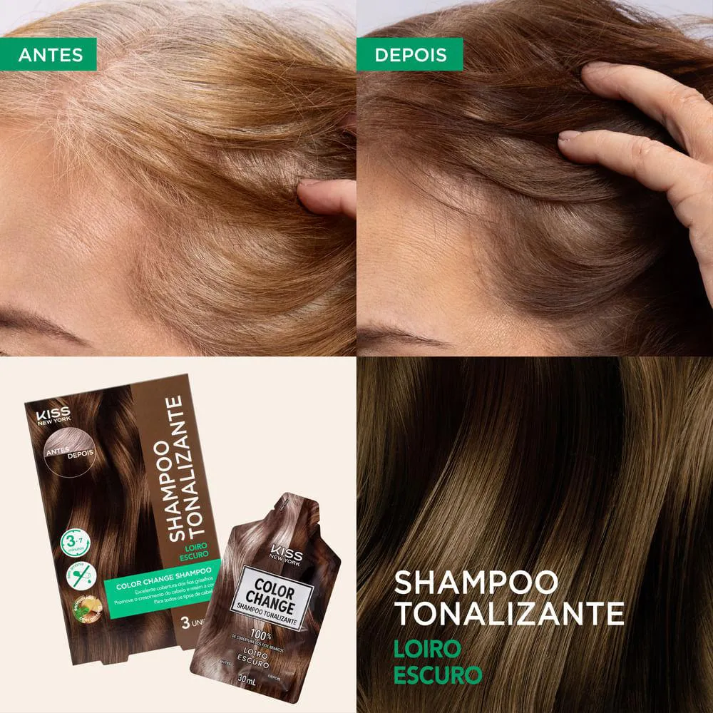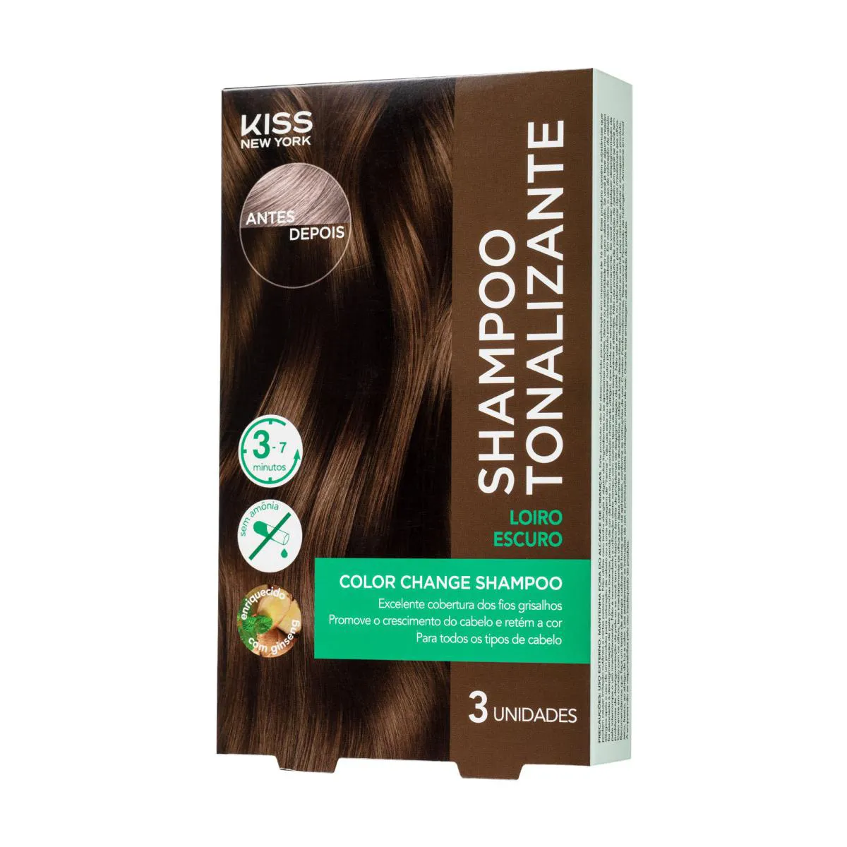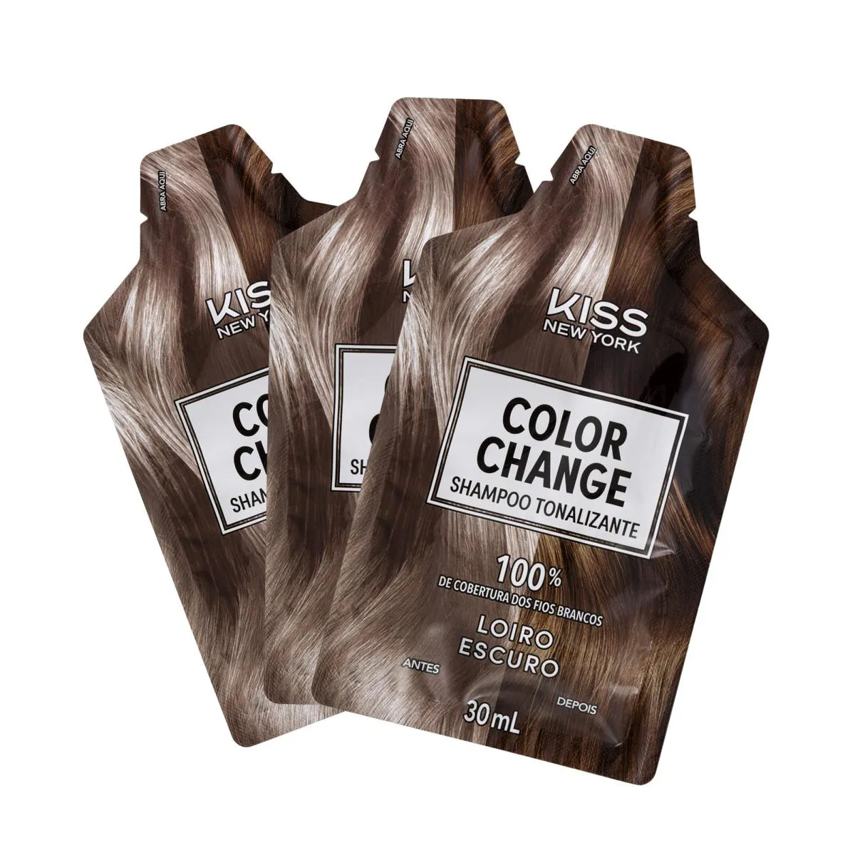 Kit com 3 Shampoos Tonalizantes Color Change Loiro Escuro - Kiss New York
