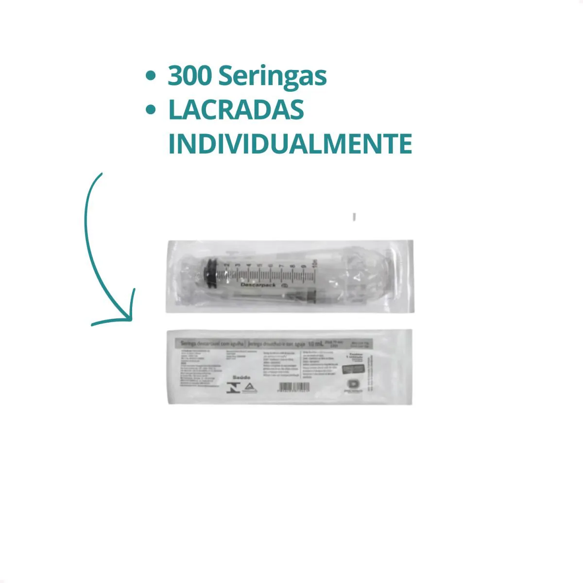 Kit com 300 Seringa 10ml Sem Agulha Descartavel Transparente