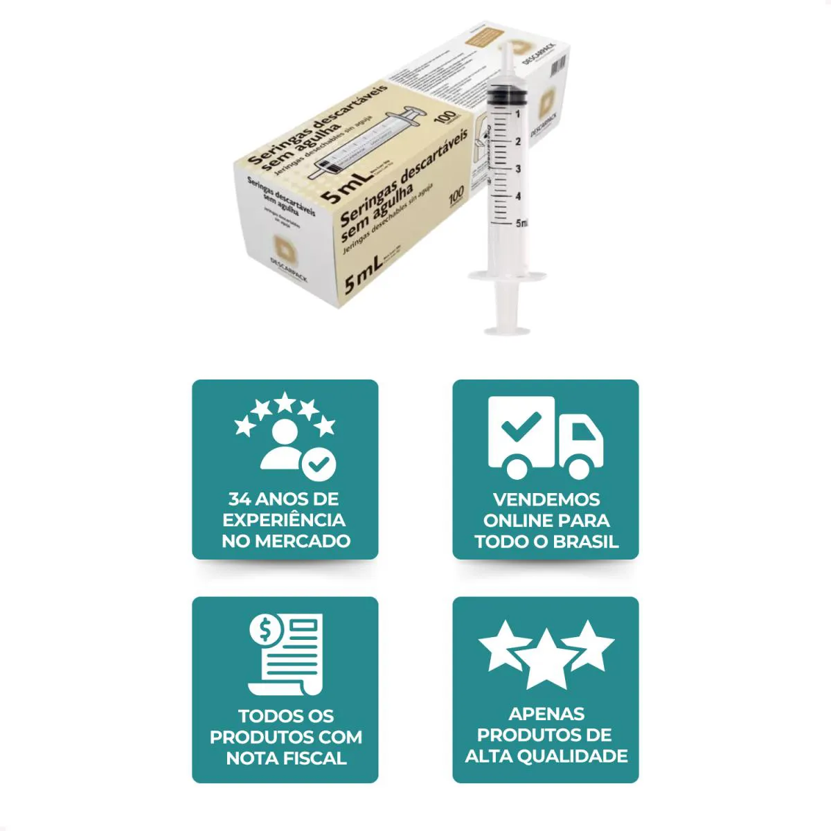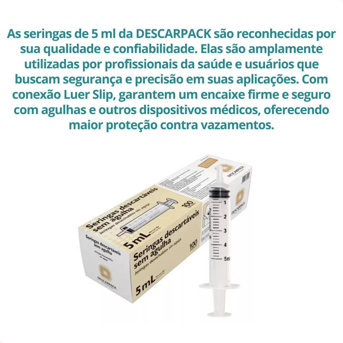 Kit com 300 Seringas 5 ML sem agulha Luer Slip Descarpack