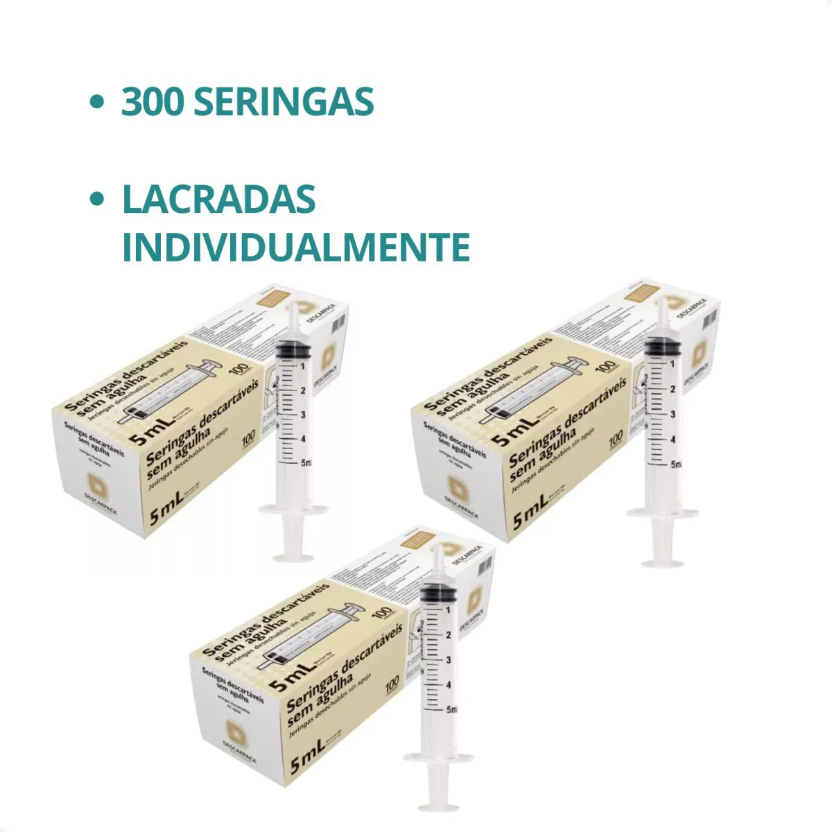 Kit com 300 Seringas 5 Ml sem Agulha Luer Slip Descarpack