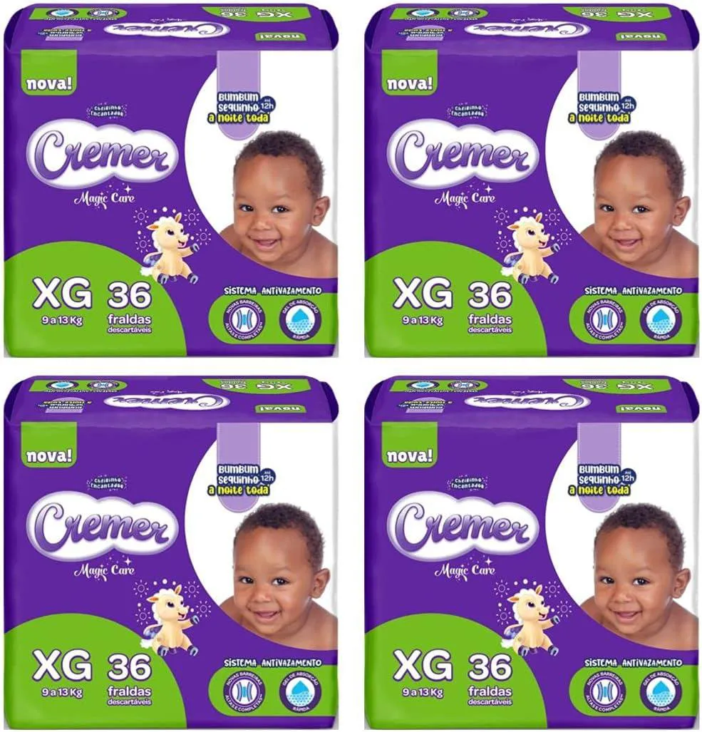 Kit com 4 - fralda Cremer Mega XG com 36 Unidades Magic Care