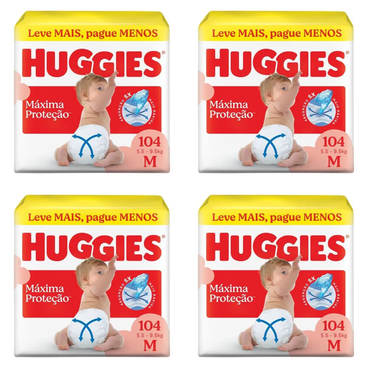 Kit com 4 Unidades de Huggies Fralda Descartável Máxima Proteção M 104 Unidades Cada