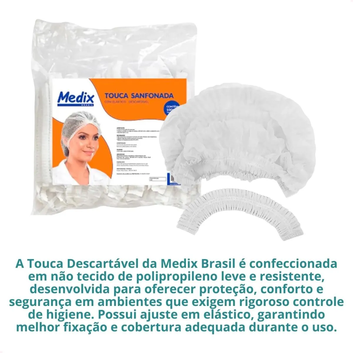 A Touca Descartável da Medix Brasil é confeccionada em não tecido de polipropileno leve e resistente, desenvolvida para oferecer proteção, conforto e segurança em ambientes que exigem rigoroso controle de higiene. Possui ajuste em elástico, garantindo melhor fixação e cobertura adequada durante o uso.