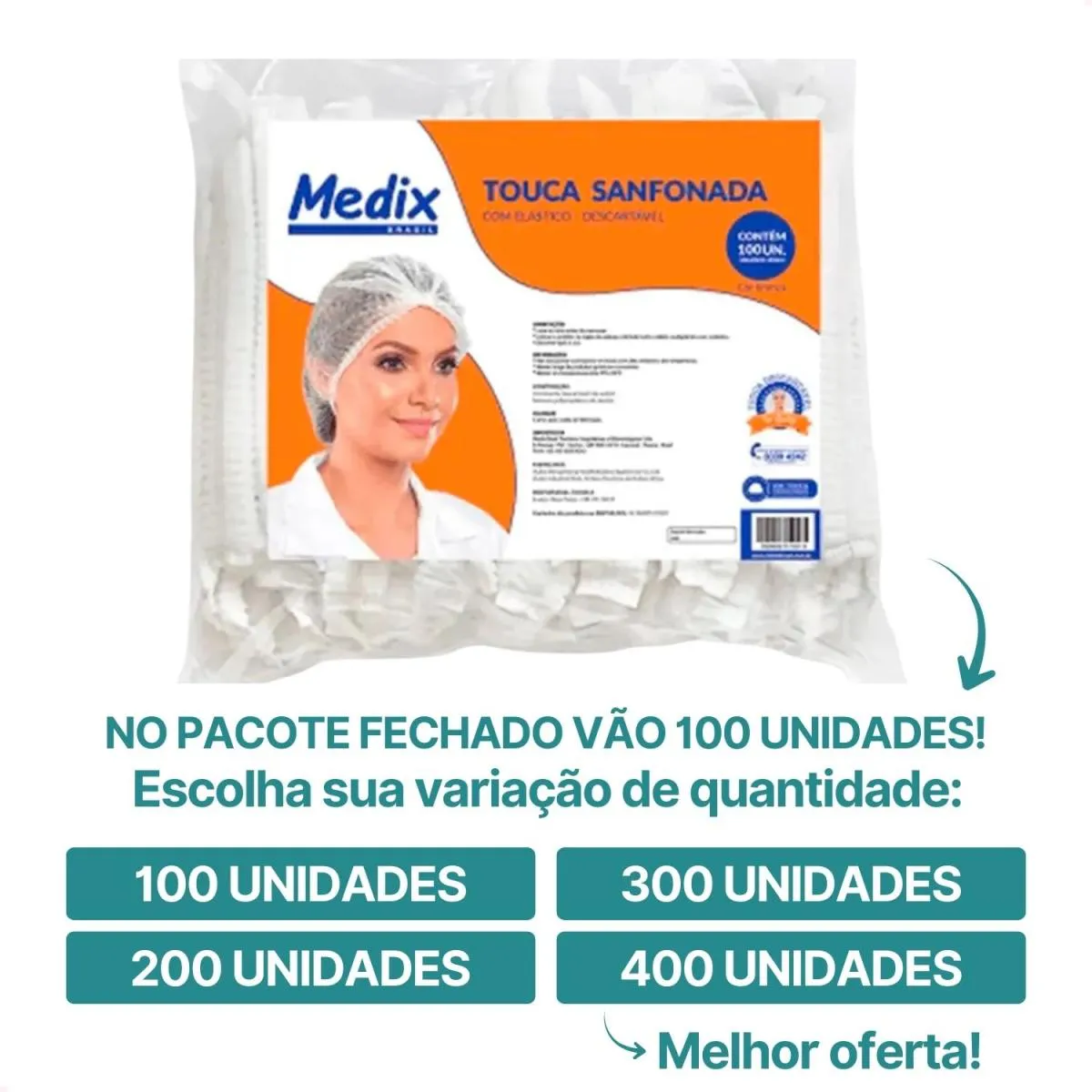 Kit com 400 - Toucas Cirúrgicas C Elástico Sanf Branca Medix