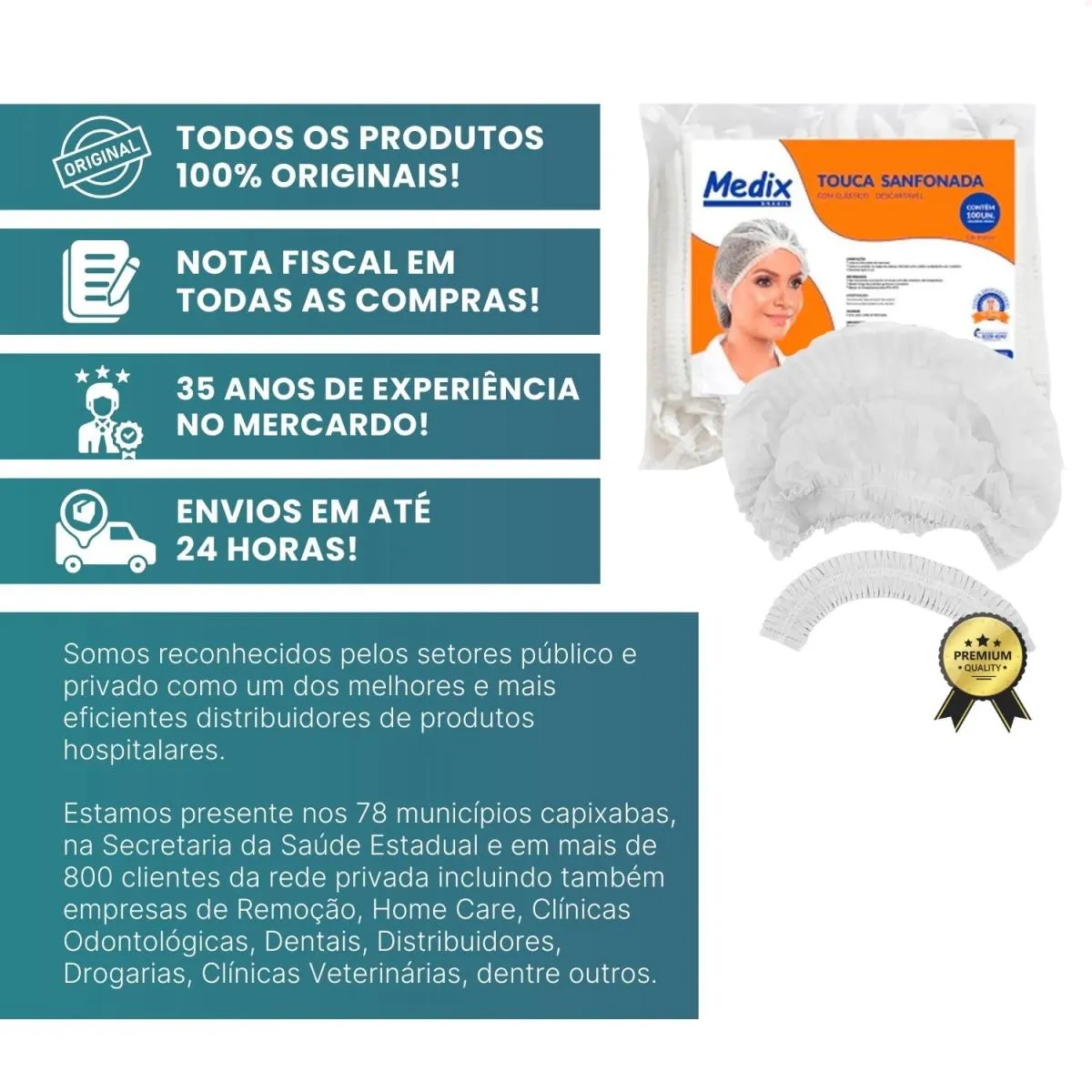 Desde 1990 atuamos com foco em licitações públicas para atendimento a hospitais e clínicas médicas do ES. Somos reconhecidos pelos setores público e privado como um dos melhores e mais eficientes distribuidores de produtos hospitalares. Estamos presentes nos 78 municípios capixabas, na Secretaria da saúde Estadual e em mais de 800 clientes da rede privada, incluindo empresas de Remoção, Home Care, Clínicas Odontológicas, Dentais, Distribuidores, Drogarias, Clínicas Veterinárias, dentre outros.