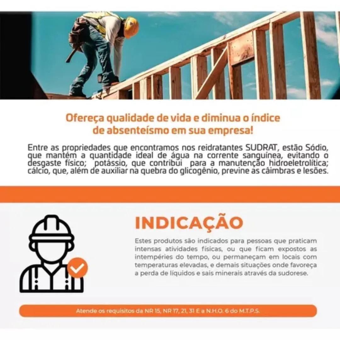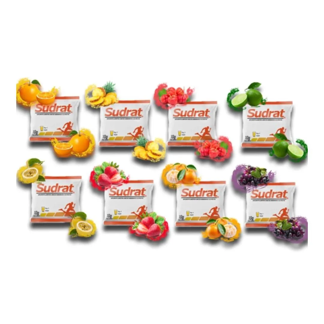 Os SUDRAT 10g é um produto destinado à reposição hídrica e de sais minerais. Após diluídos em água e consumidos, estes produtos criam um meio de tonicidade que facilita a hidratação de quem os consome.