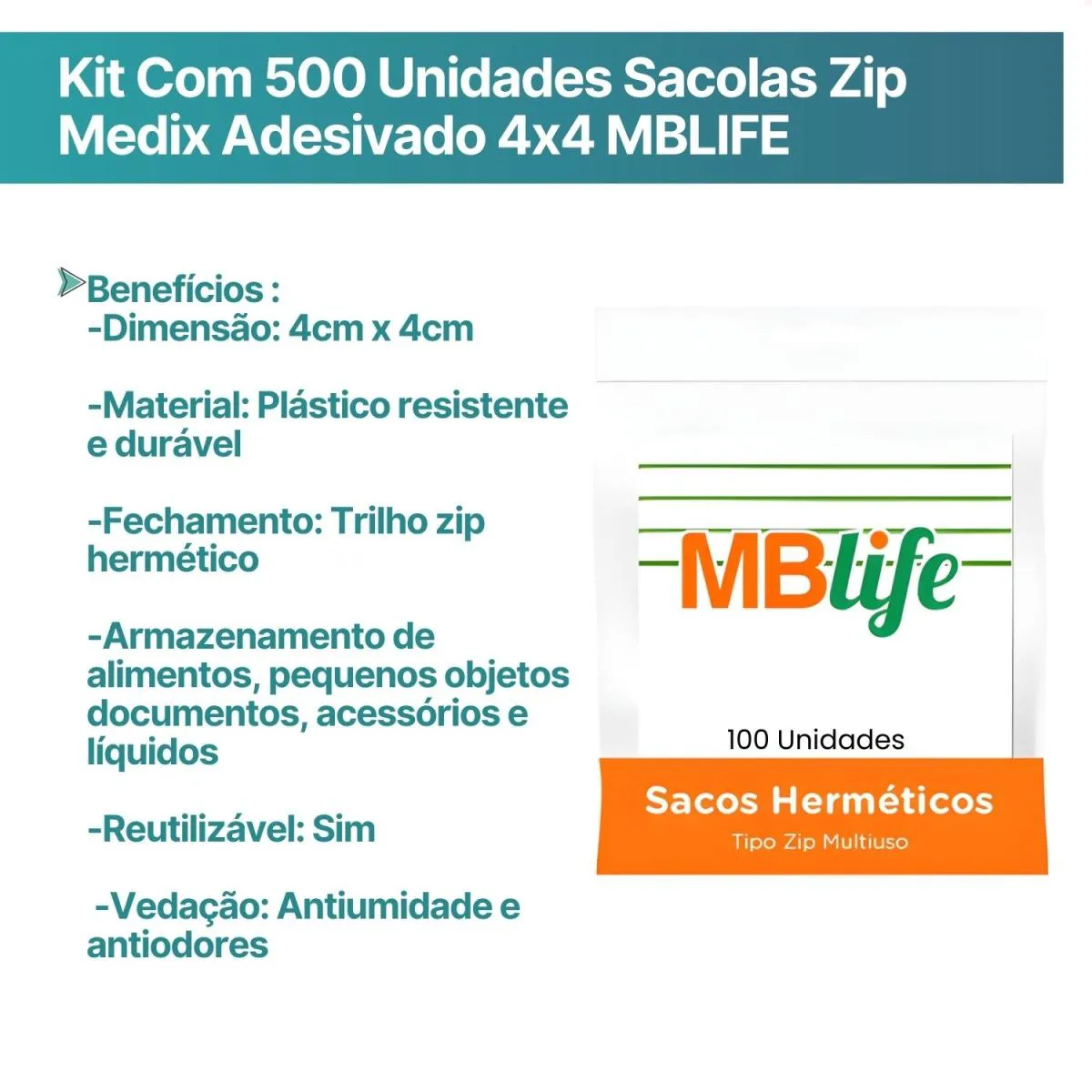Kit com 500 Unidades Sacolas Zip Medix Adesivado 4X4 Mblife - Envio Imediato