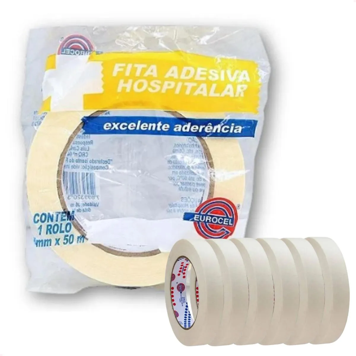 KIT COM 6 ROLOS DE FITA CREPE HOSPITALAR 16MM X 50M (Eurocel)