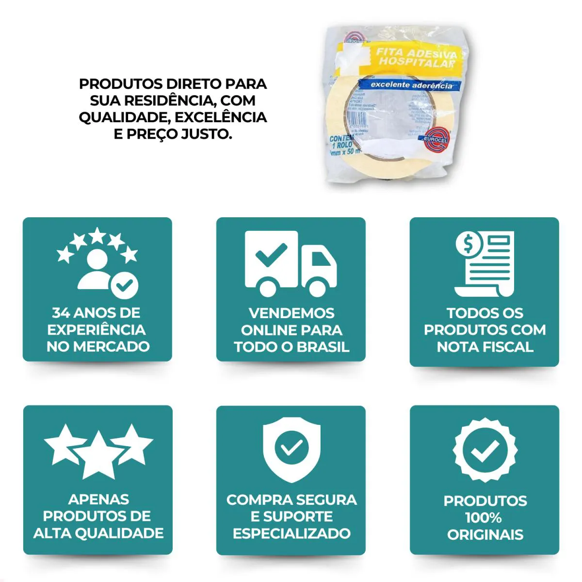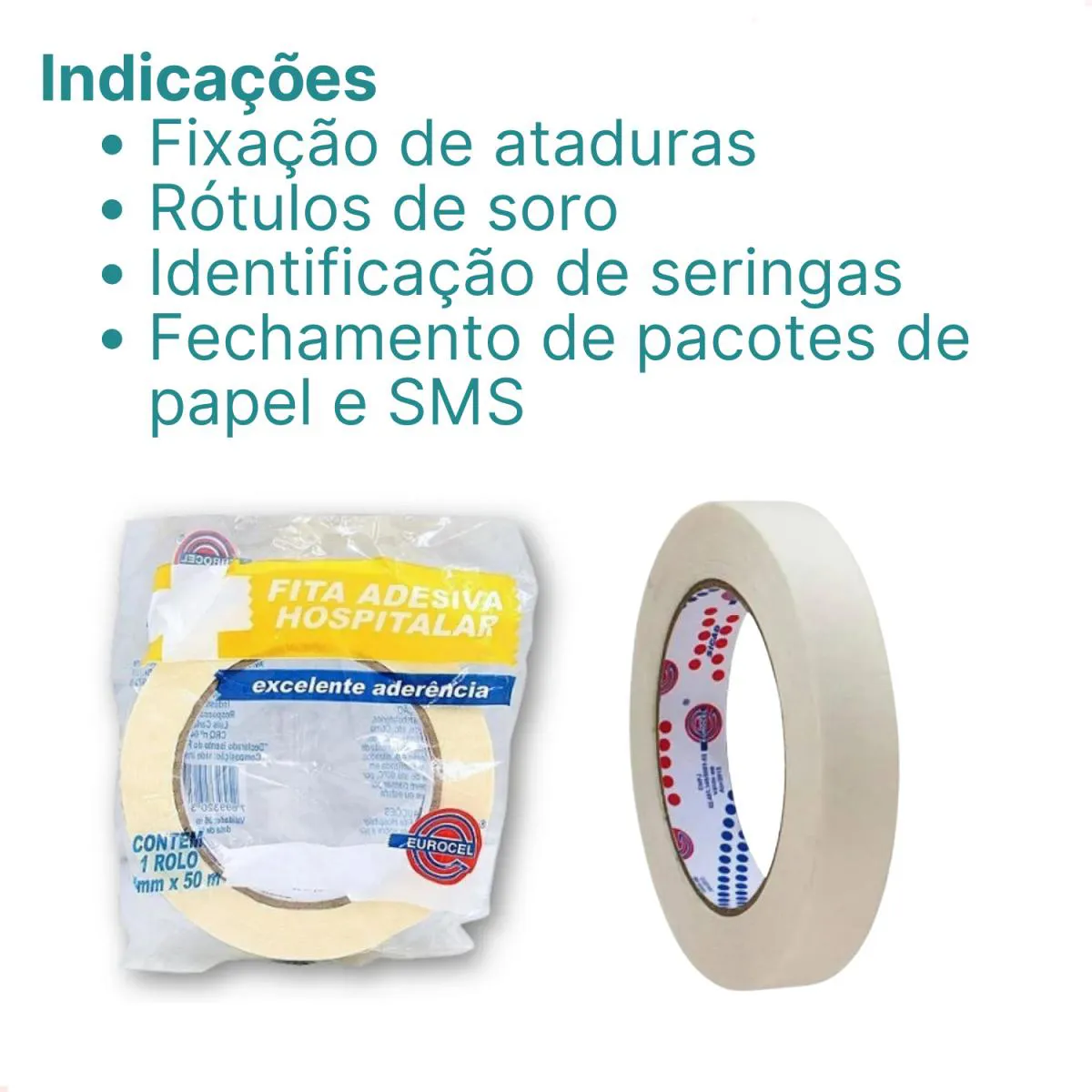 A Fita Hospitalar Branca Papel Crepe Eurocel é um produto indicado para diversas aplicações hospitalares.
