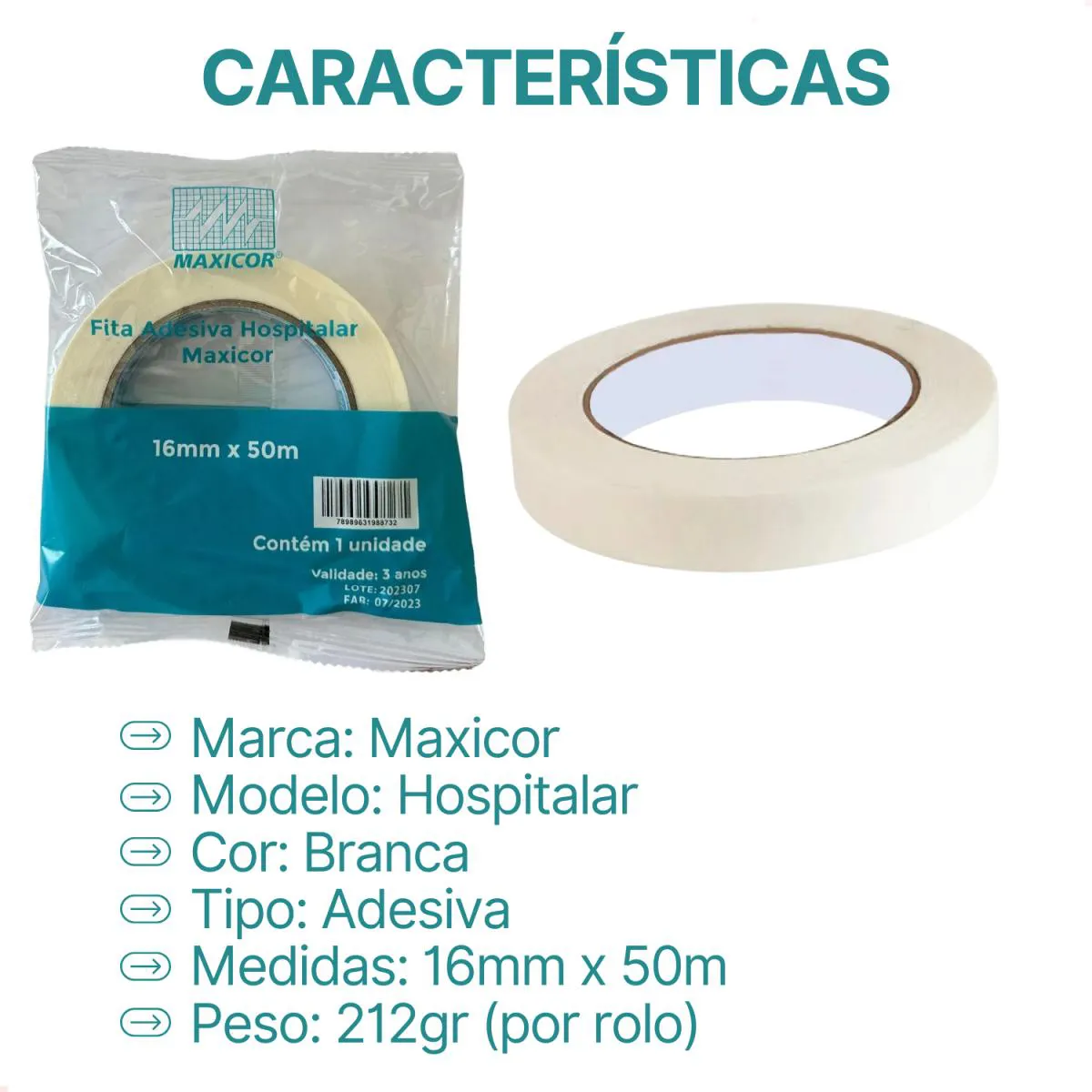A Fita Hospitalar Branca Papel Crepe Maxicor é um produto indicado para diversas aplicações hospitalares.