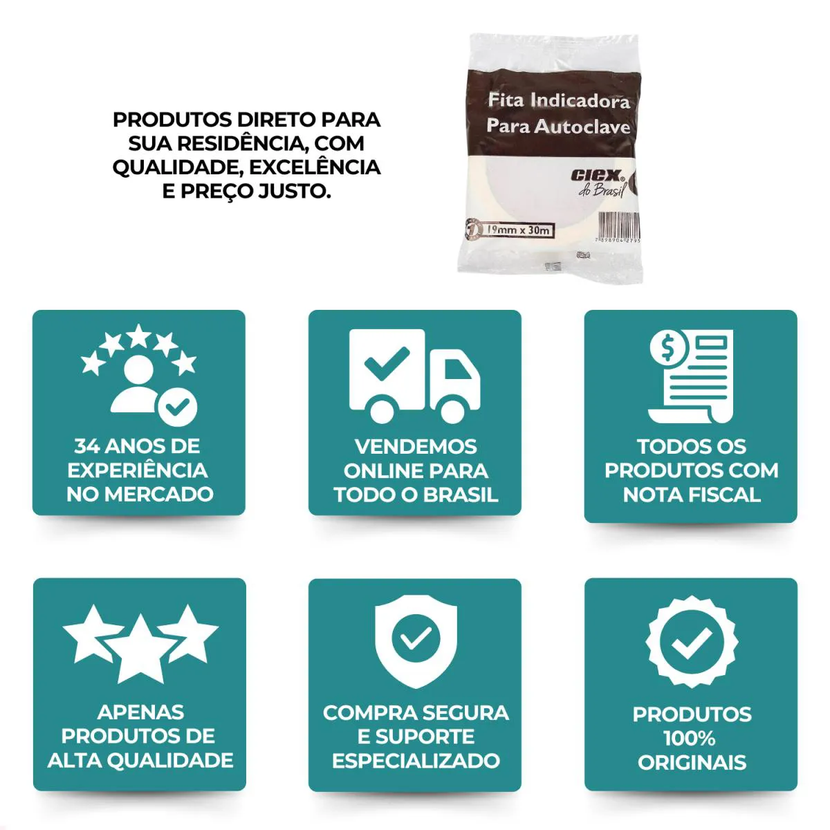 Kit com 6 - Fita Indicadora para Autoclave 19mm X 30m - Ciex