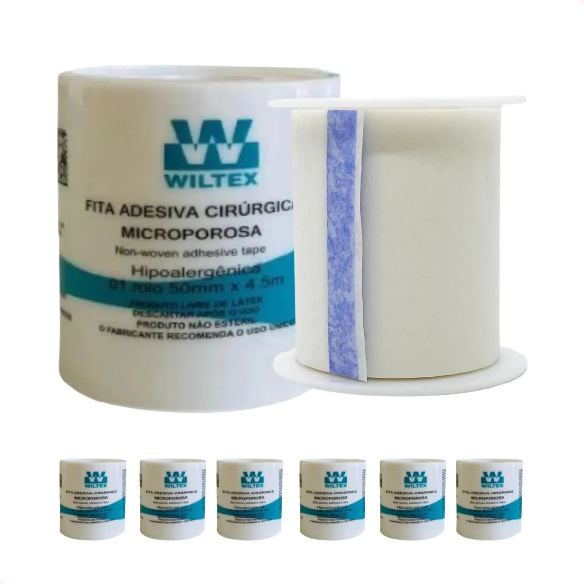 Kit com 6 - Fita Microporosa Cirúrgica Branca 5cm x 4,5m - Wiltex