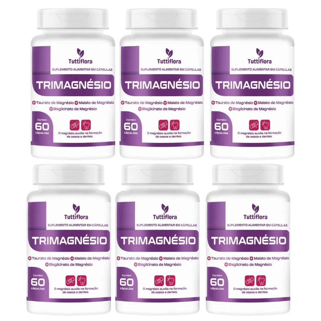 Kit com 6 - Tri Magnésio Premium (taurato, Malato e Quelato) 60 Capsulas de 500mg Nataly sem Sabor