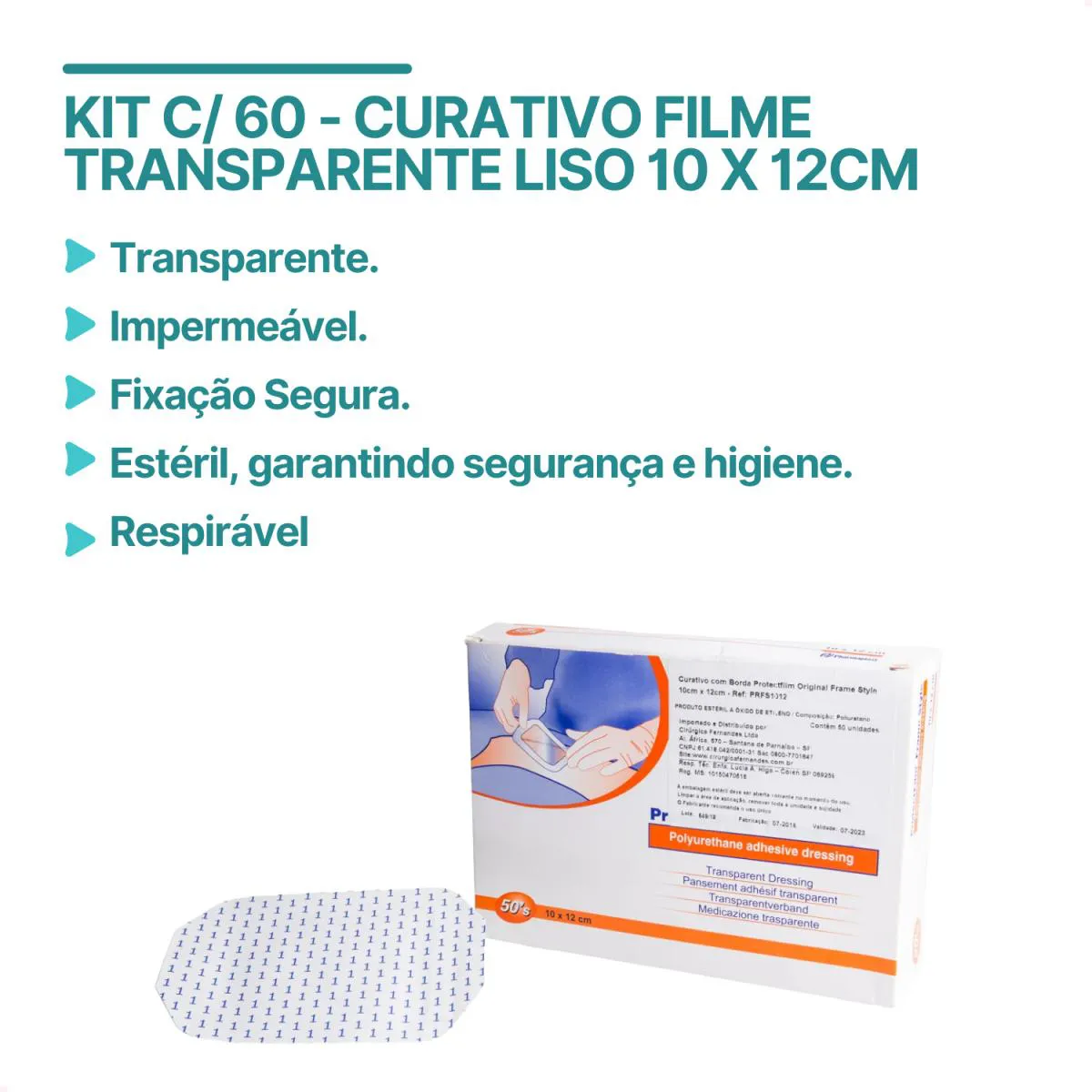 Kit com 60 - Curativos Cirurgicos Filme Transp Liso 10X12 Cm