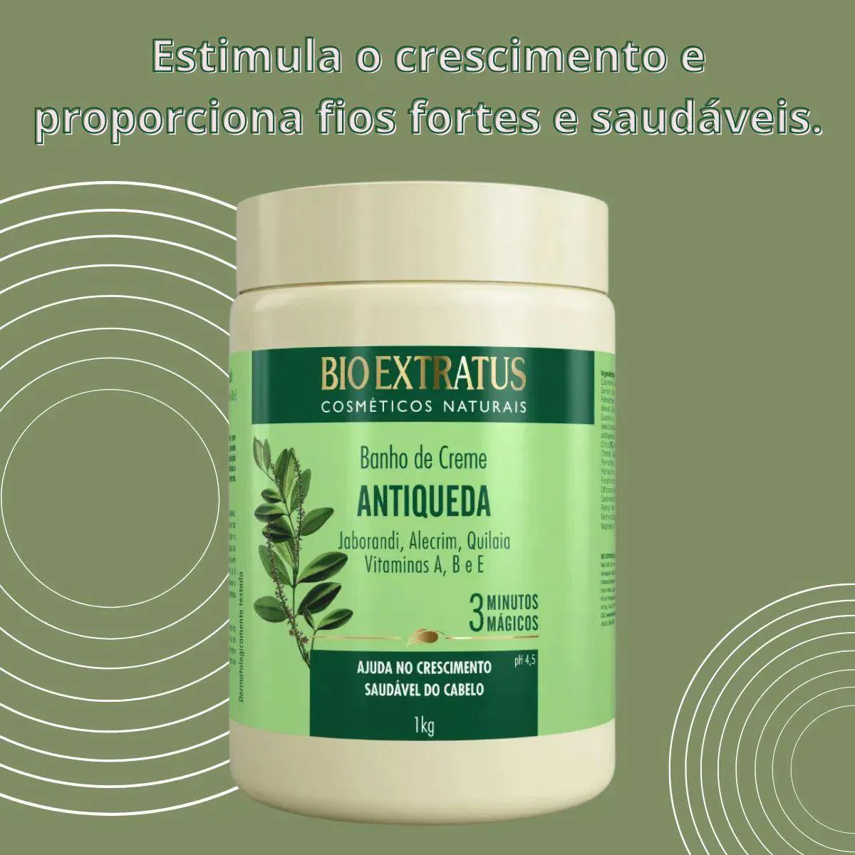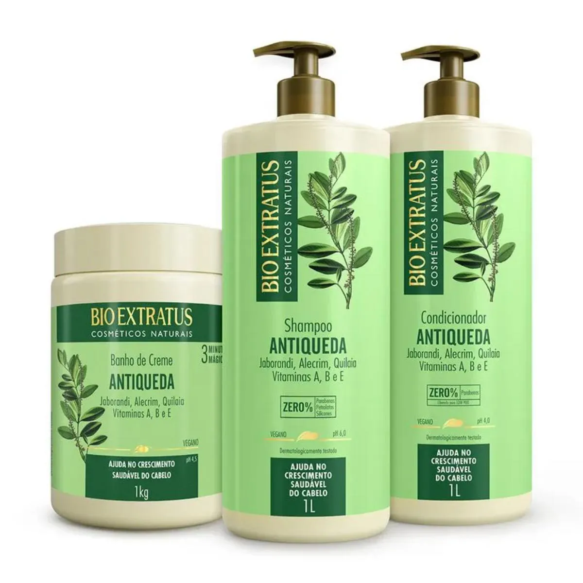Kit com shampoo, condicionador e máscara tamanho profissional para cabelos com queda e pouco crescimento. Bio Extratus Jaborandi Antiqueda Trio Salão revitaliza e fortalece.O Kit Bio Extratus Jaborandi Antiqueda Trio Salão oferece uma combinação equilibrada de extratos e vitaminas, formulada para nutrir o bulbo capilar e tonificar o couro cabeludo. Essa ação conjunta fortalece e revitaliza os fios, promovendo o crescimento capilar saudável e auxiliando na prevenção da queda.