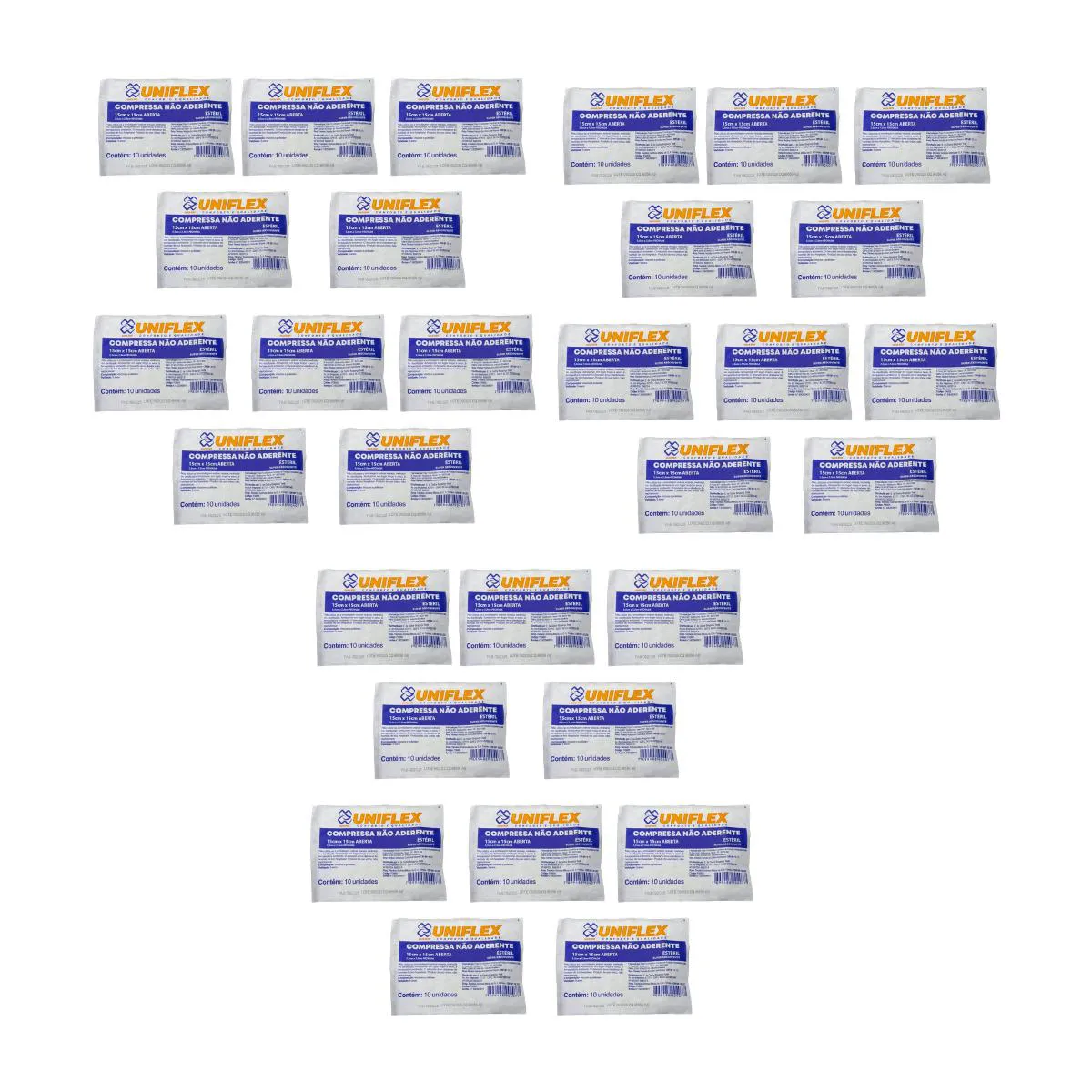 Kit Compressa de Gaze Não Aderente Uniflex Esteril 15X15Cm 300Un - 30Pct