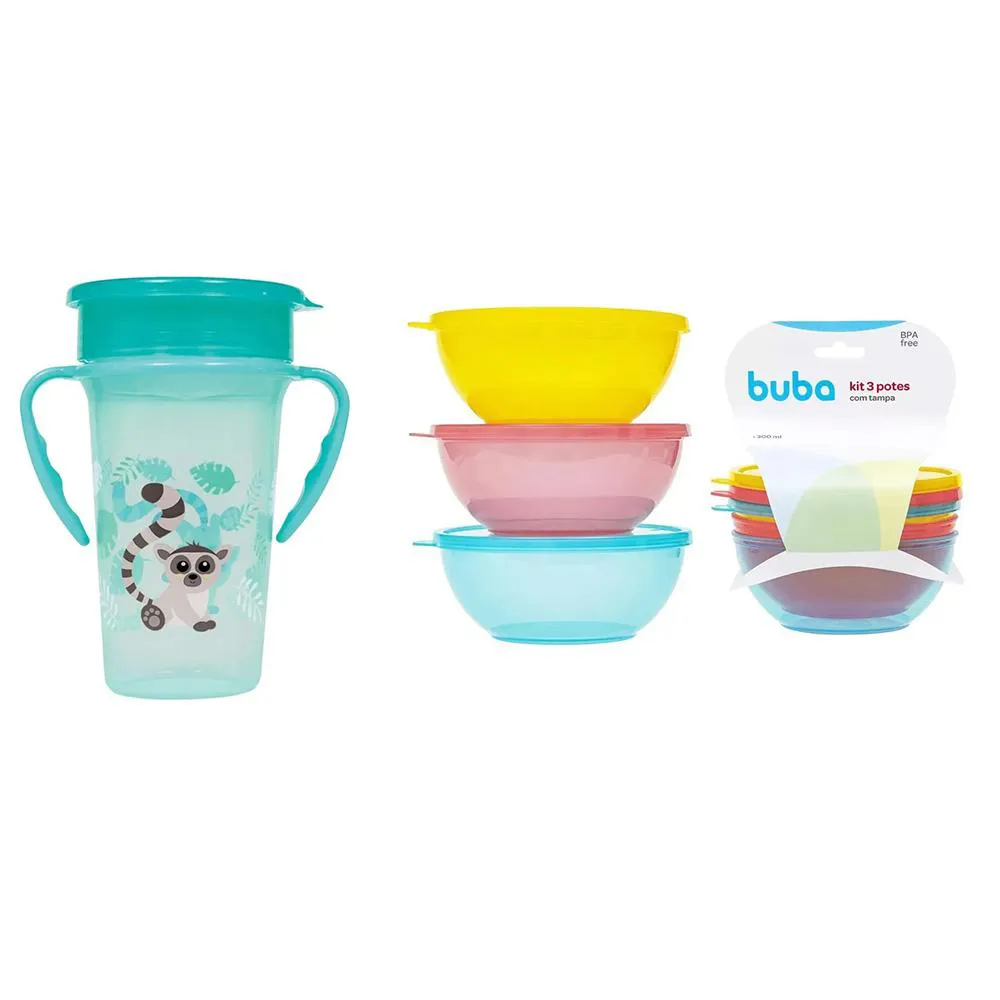 Kit Copo 360° 300Ml + Pote Bolws C/3Und Buba