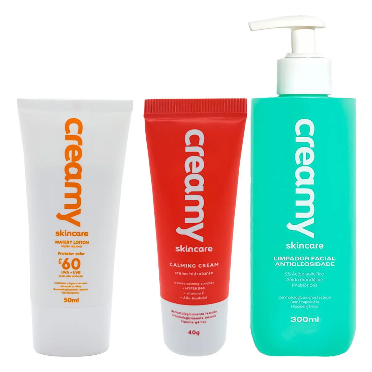 Kit Creamy Calming Cream + Protetor Solar + Limpador Facial Antioleosidade