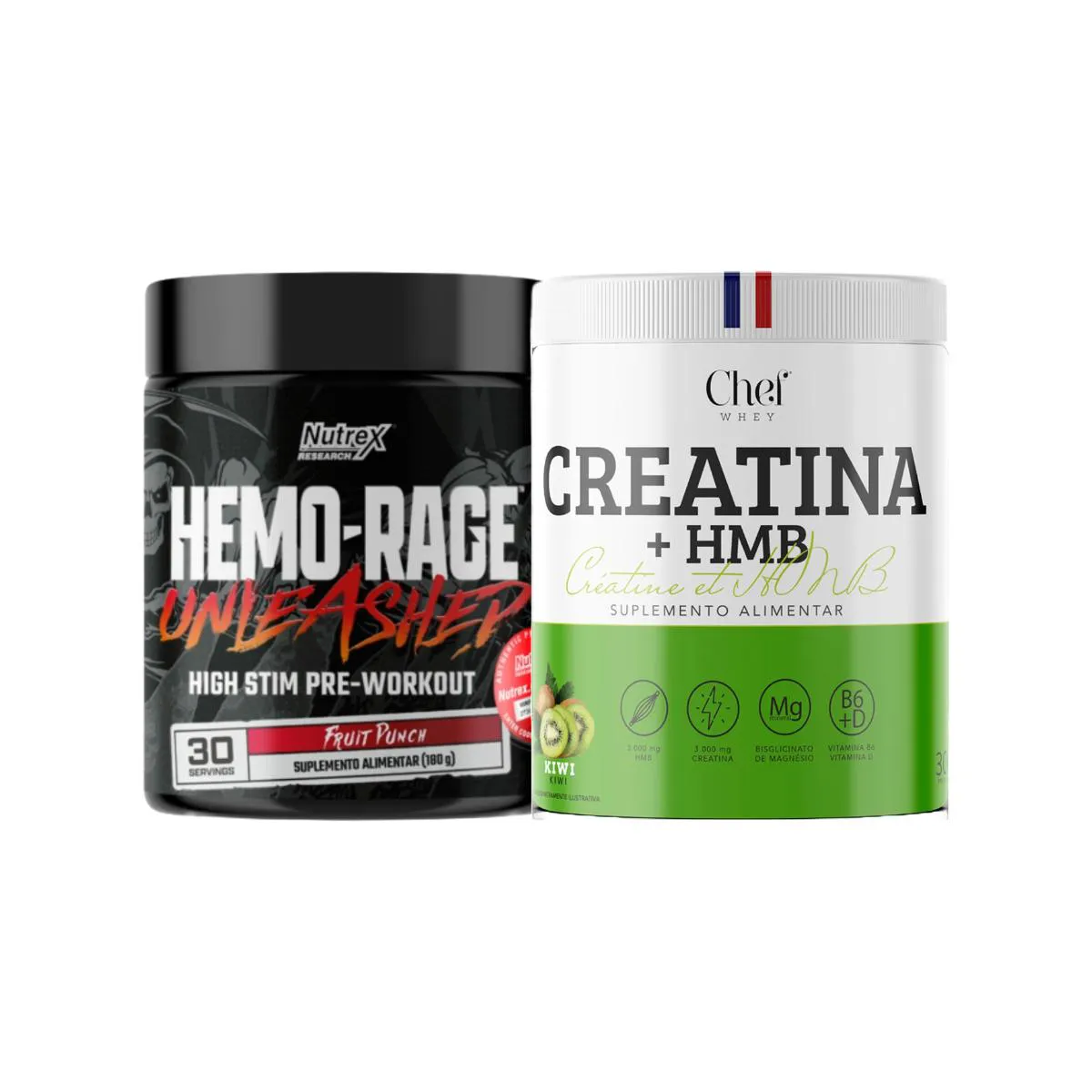O Kit Creatina HMB com Vitamina 300g Chef Whey + Pré-Treino Ultra Concentrado 180g Nutrex une dois suplementos que atuam em sintonia: um constrói com estratégia, o outro acende o motor da ação.
