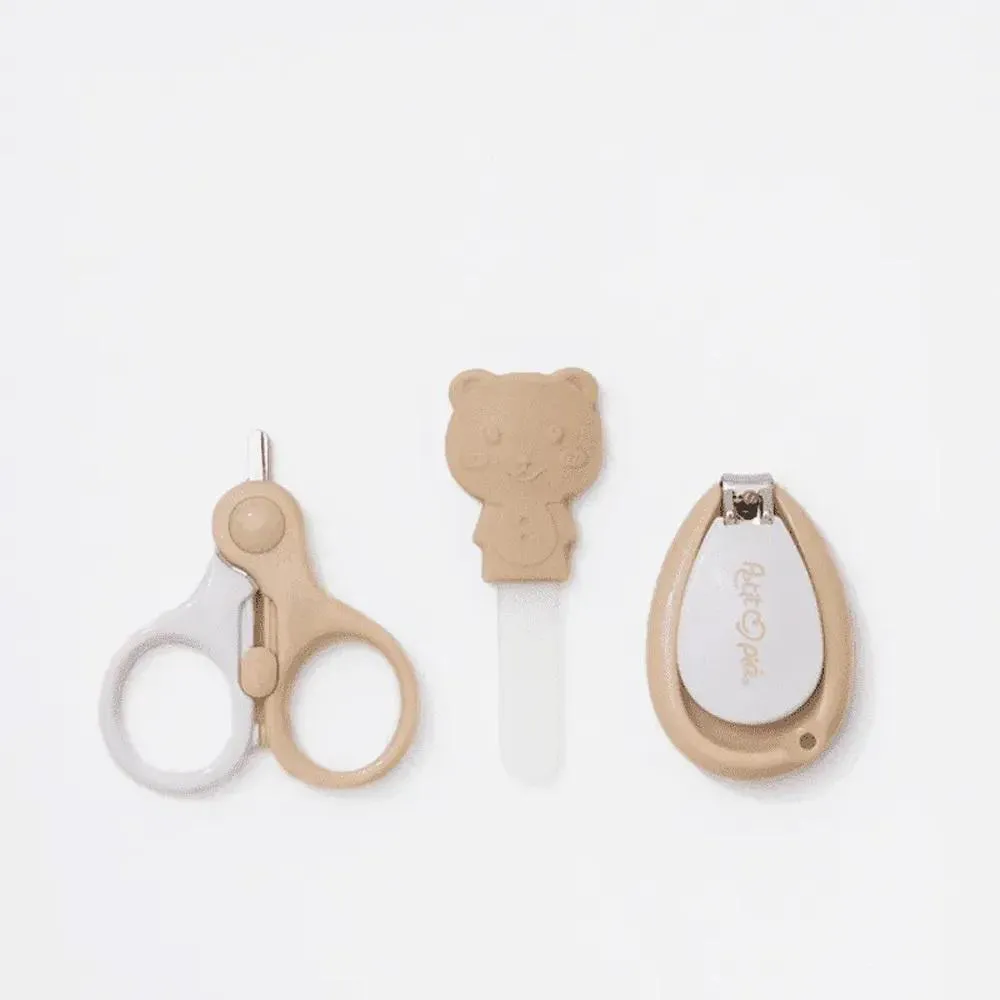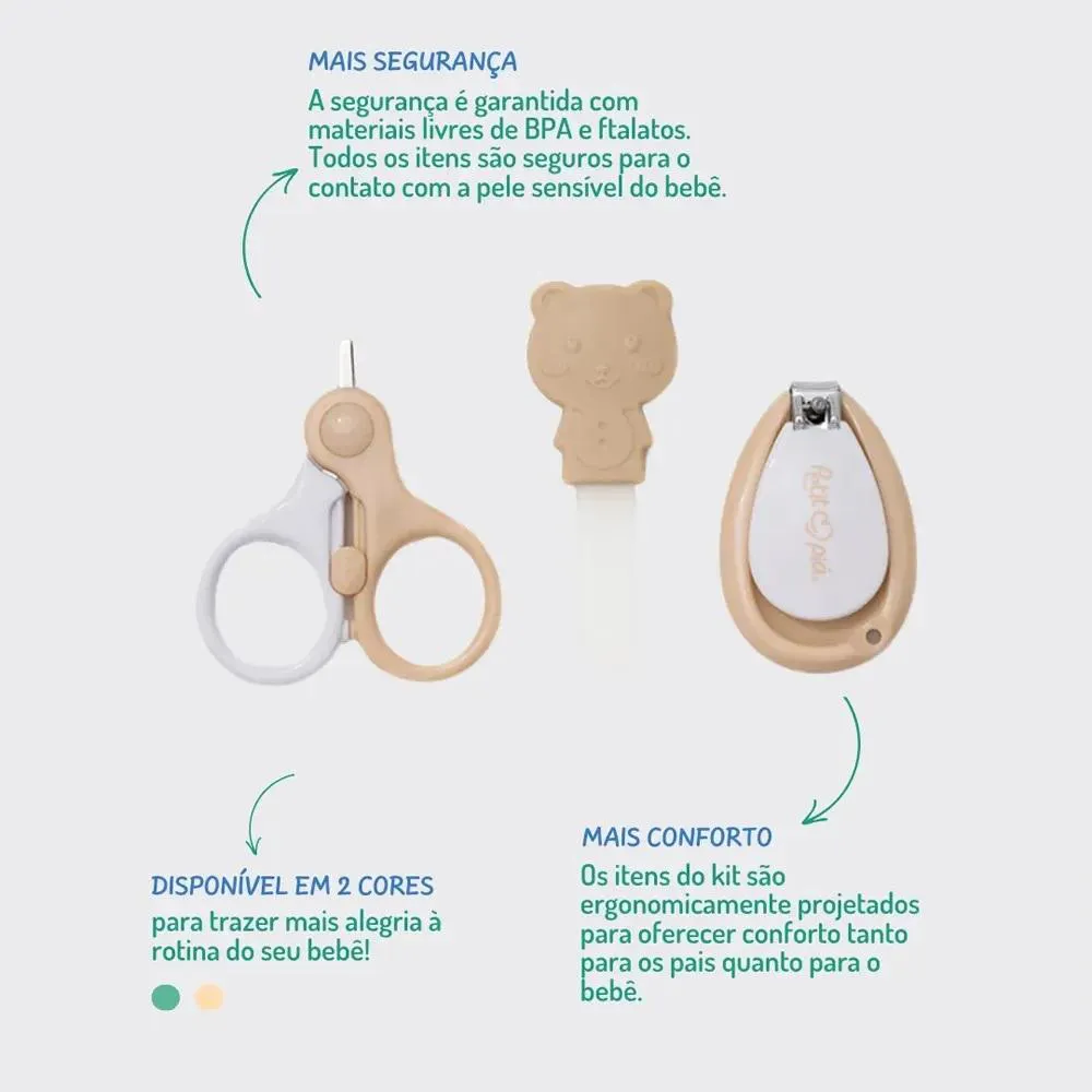 - Segurança: A segurança é garantida com materiais livres de BPA e ftalatos. A tesoura possui pontas arredondadas para evitar acidentes, e o cortador é projetado para um uso seguro. A lixa tem uma superfície suave para não irritar a pele delicada. Todos os itens são seguros para o contato com a pele sensível do bebê.
