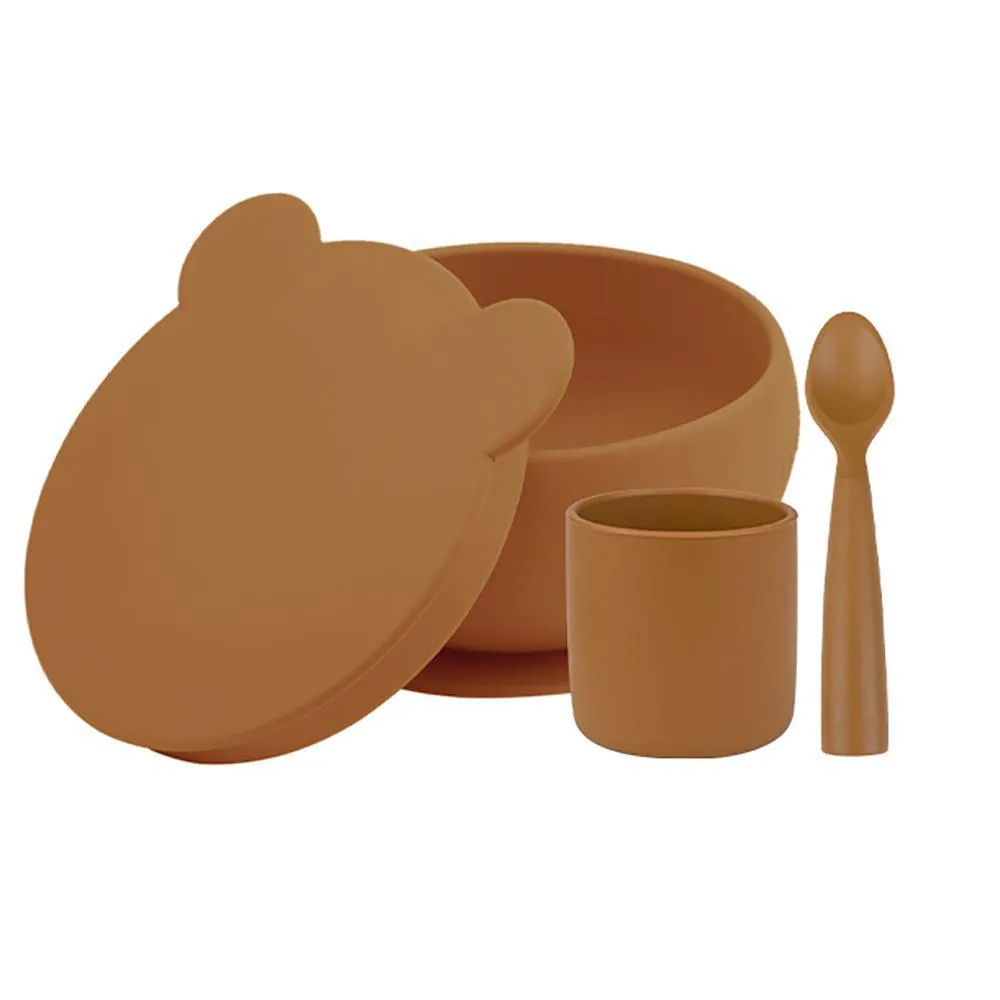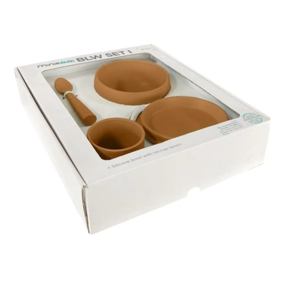 KIT DE ALIMENTAçãO SILICONE BLW SET1 WOODY BROWN - MINIKOIOI