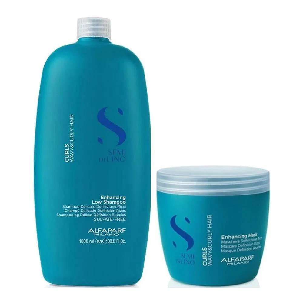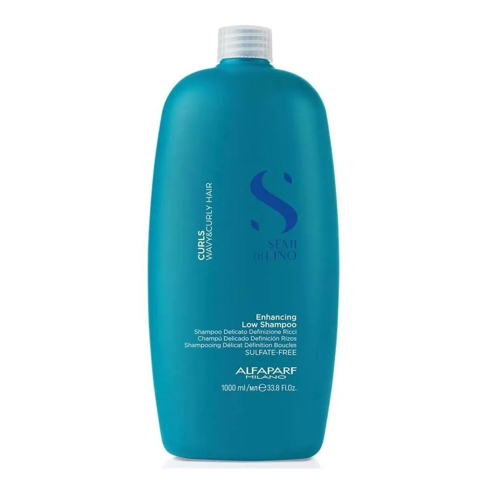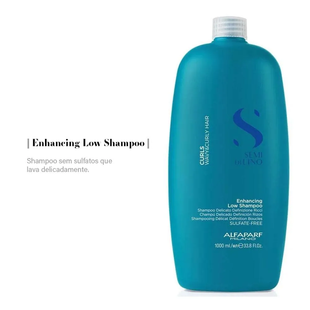 01 shampoo Alfaparf Semi Di Lino Curls Low 1 Litro: limpa suavemente, doa hidratação e nutrição a fibra, deixando os cachos mais definidos, controlados e macios.