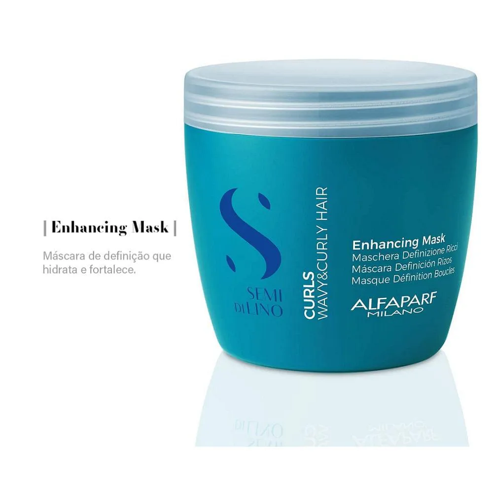 01 Máscara Alfaparf Semi Di Lino Curls 500ml: máscara de tratamento intensivo que hidrata e os cachos, deixando-os macios e evitando o frizz. Indicado para cabelos cacheados e ondulados. Sua fórmula especial, protege os cabelos enquanto mantém a umidade natural dos fios, para que fiquem mais hidratados, com cachos sem frizz, macios e com brilho. Os ativos da linha:
