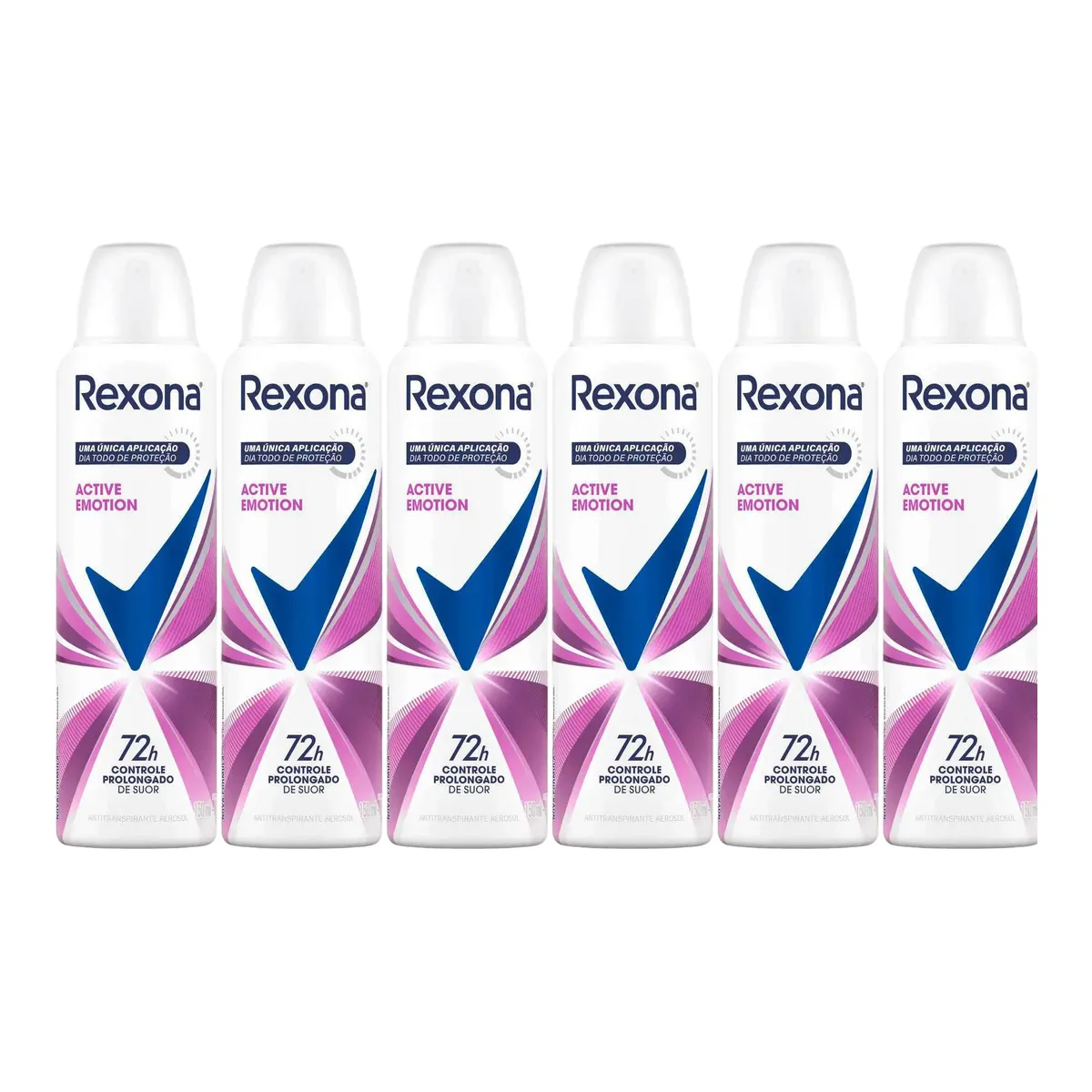 Kit Desodorante Antitranspirante Aerosol Rexona Active Emotion Feminino 72h 150ml 6 unidades