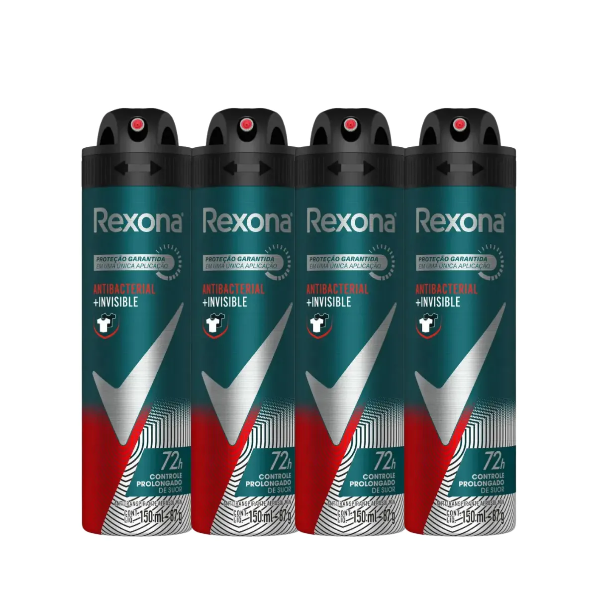 Kit Desodorante Antitranspirante Aerosol Rexona Men Antibacterial +Invisible 72h 150ml 4 unidades