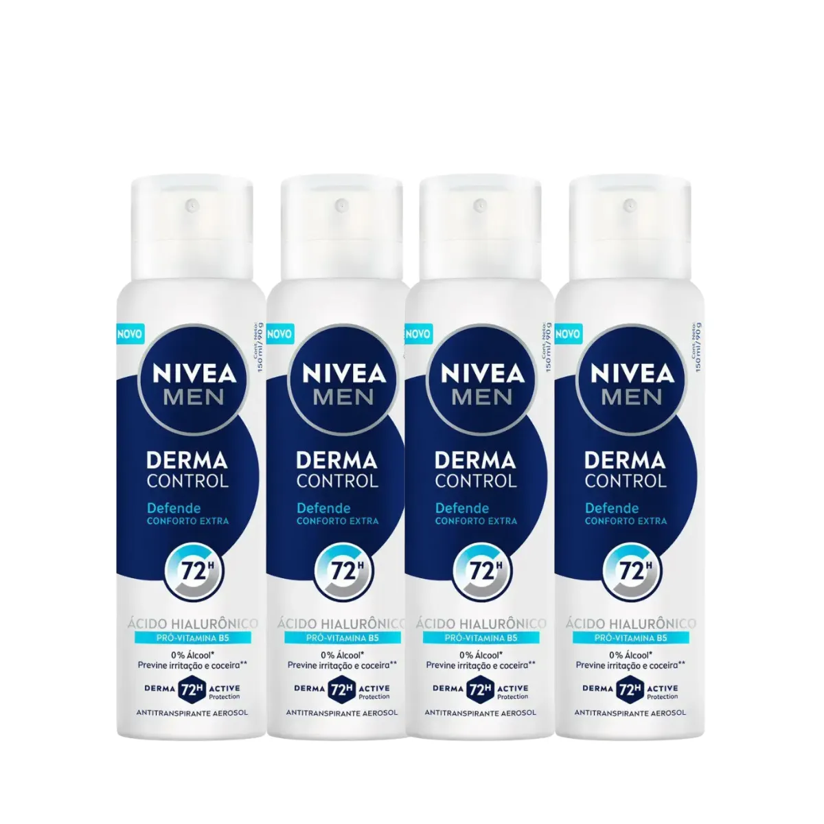 Kit Desodorante Antitranspirante Aerossol Nivea Men Derma Control Defende Masculino 72h 150ml 4 unidades