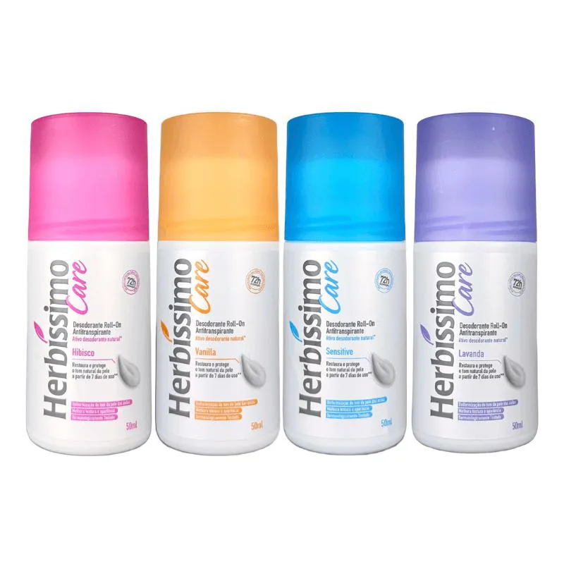 Kit Desodorante Antitranspirante Roll-On Herbíssimo Care 50Ml - 4 Unidades