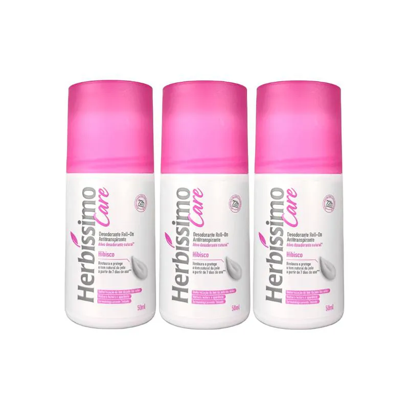 Kit Desodorante Antitranspirante Roll-On Herbíssimo Hibísco 50Ml - 3 Unidades