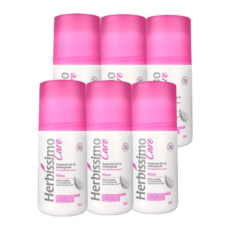 Kit Desodorante Antitranspirante Roll-On Herbíssimo Hibísco 50Ml - 6 Unidades