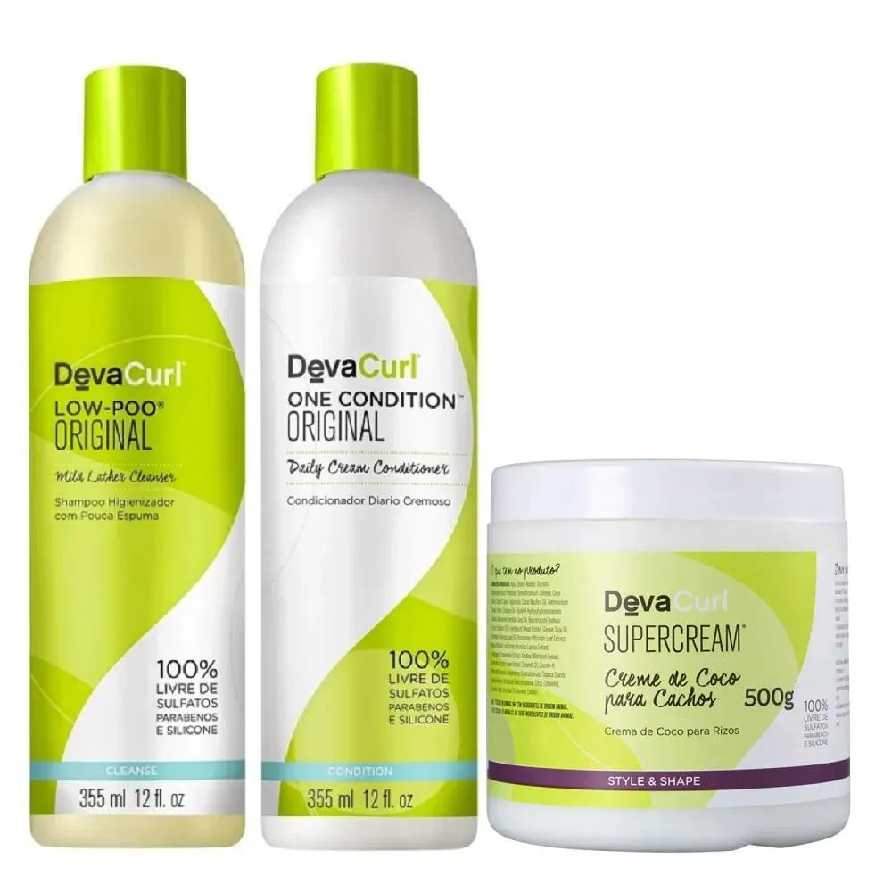 KIT DEVA CURL - LOW POO SHAMPOO 355ML + CONDICIONADOR 355ML + SUPERCREAM 500G