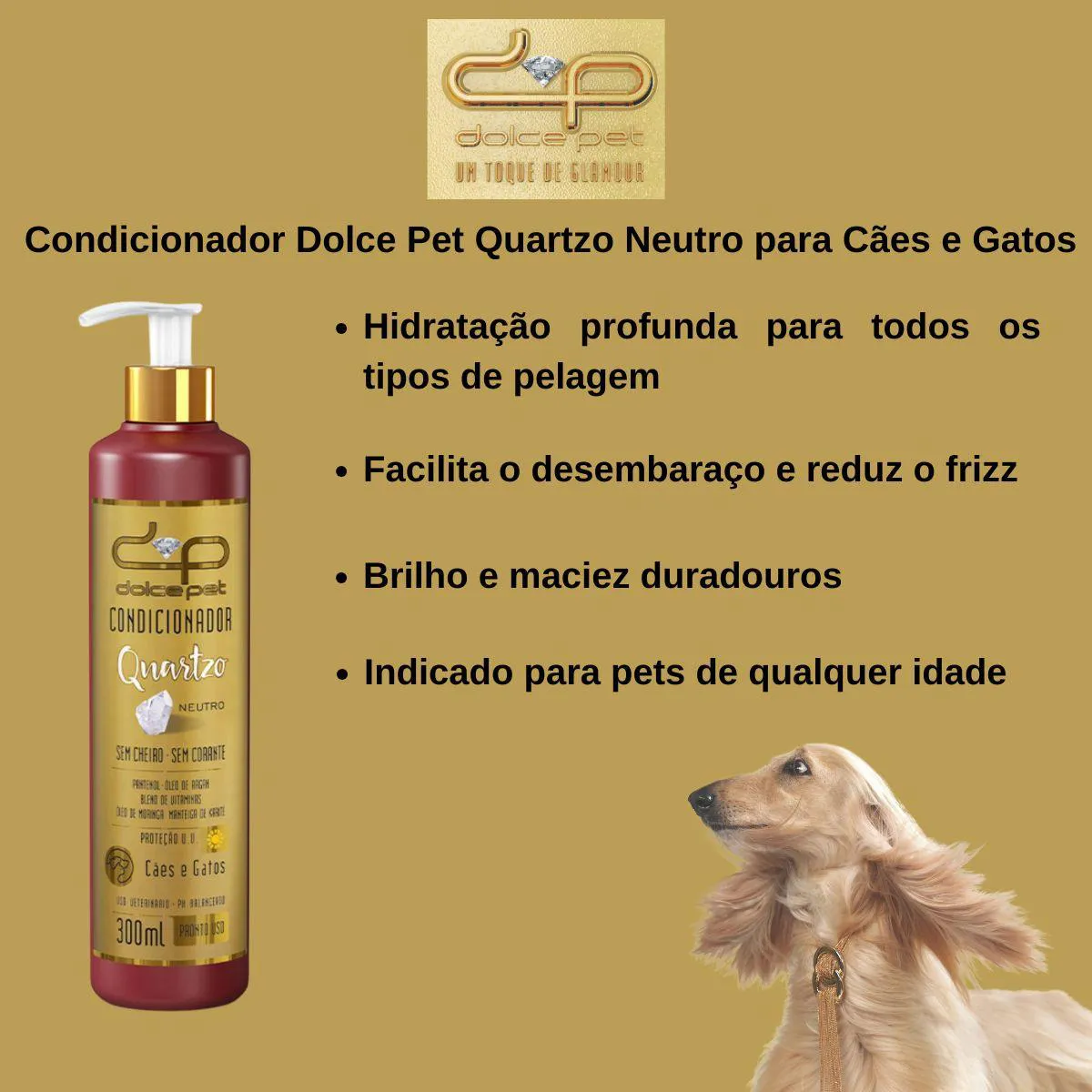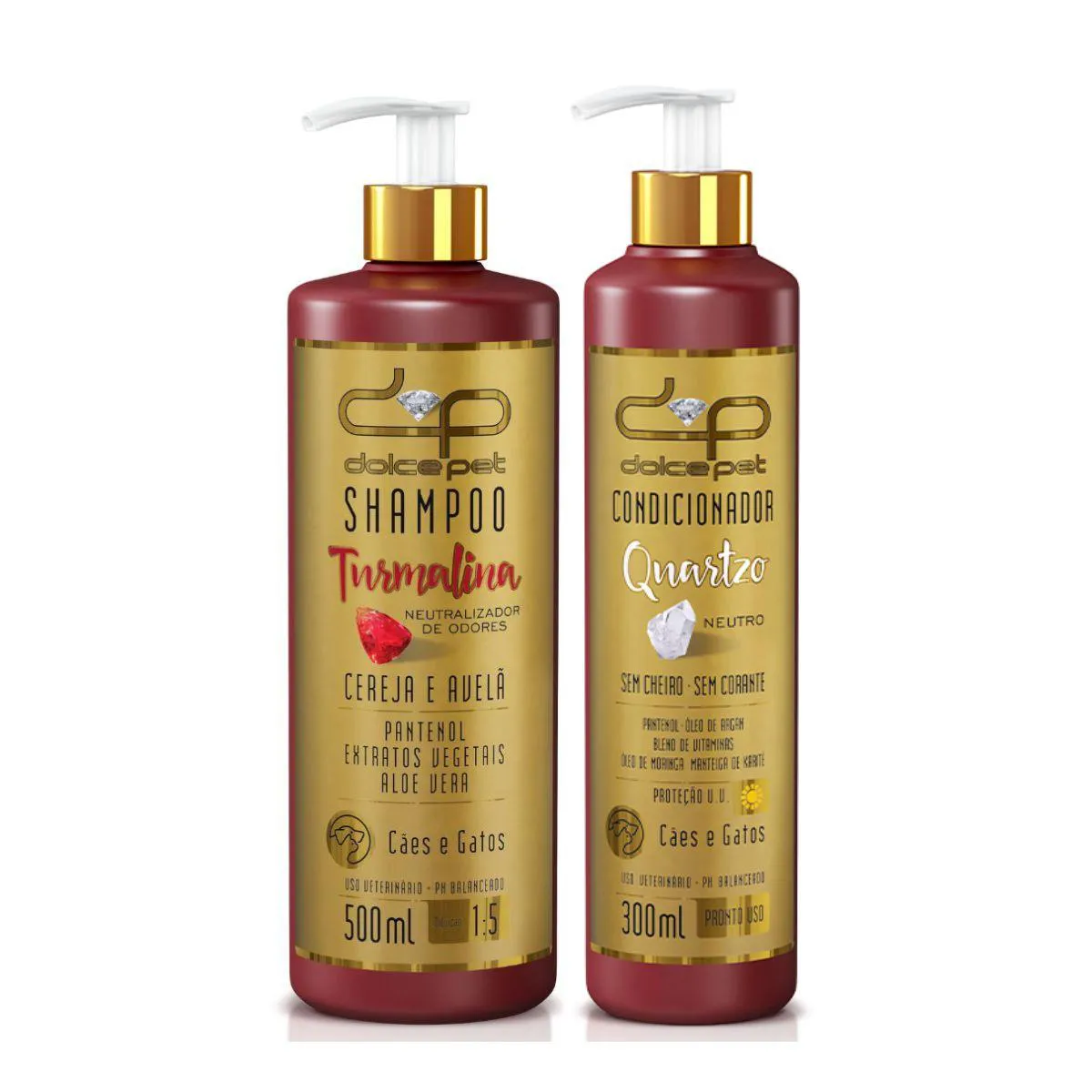 Kit Dolce Pet Shampoo Neutralizador de Odores + Condicionador Quartzo Neutro Cereja e Avelão para Cães e Gatos