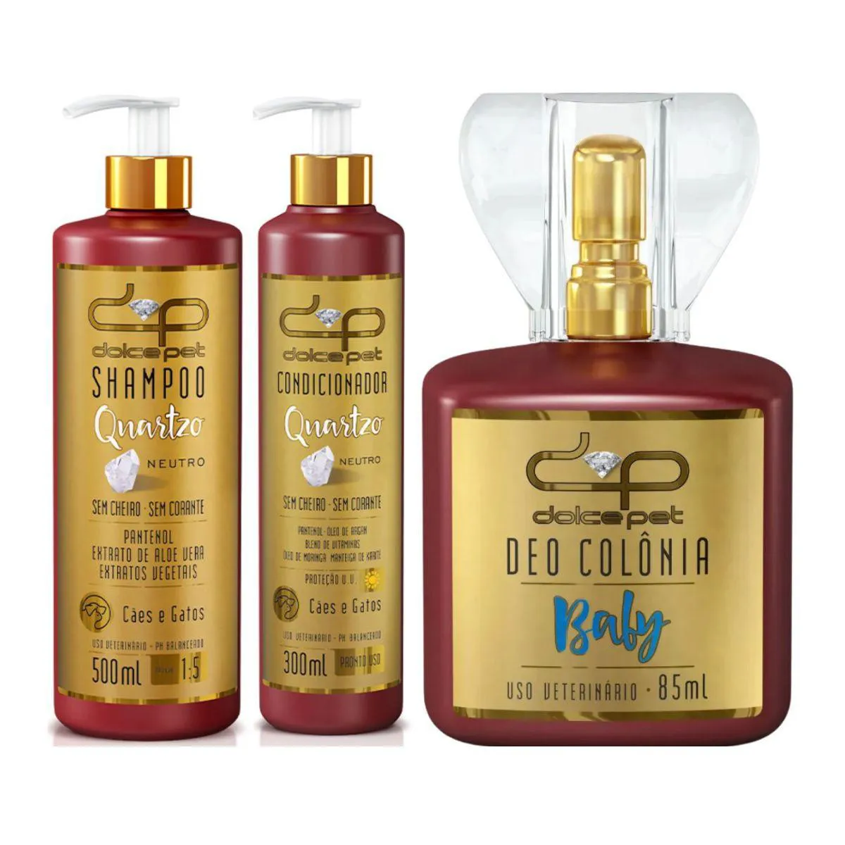 Kit Dolce Pet Shampoo Neutro + Condicionador Neutro + Deo Colônia Dolce Pet Baby Cães e Gatos