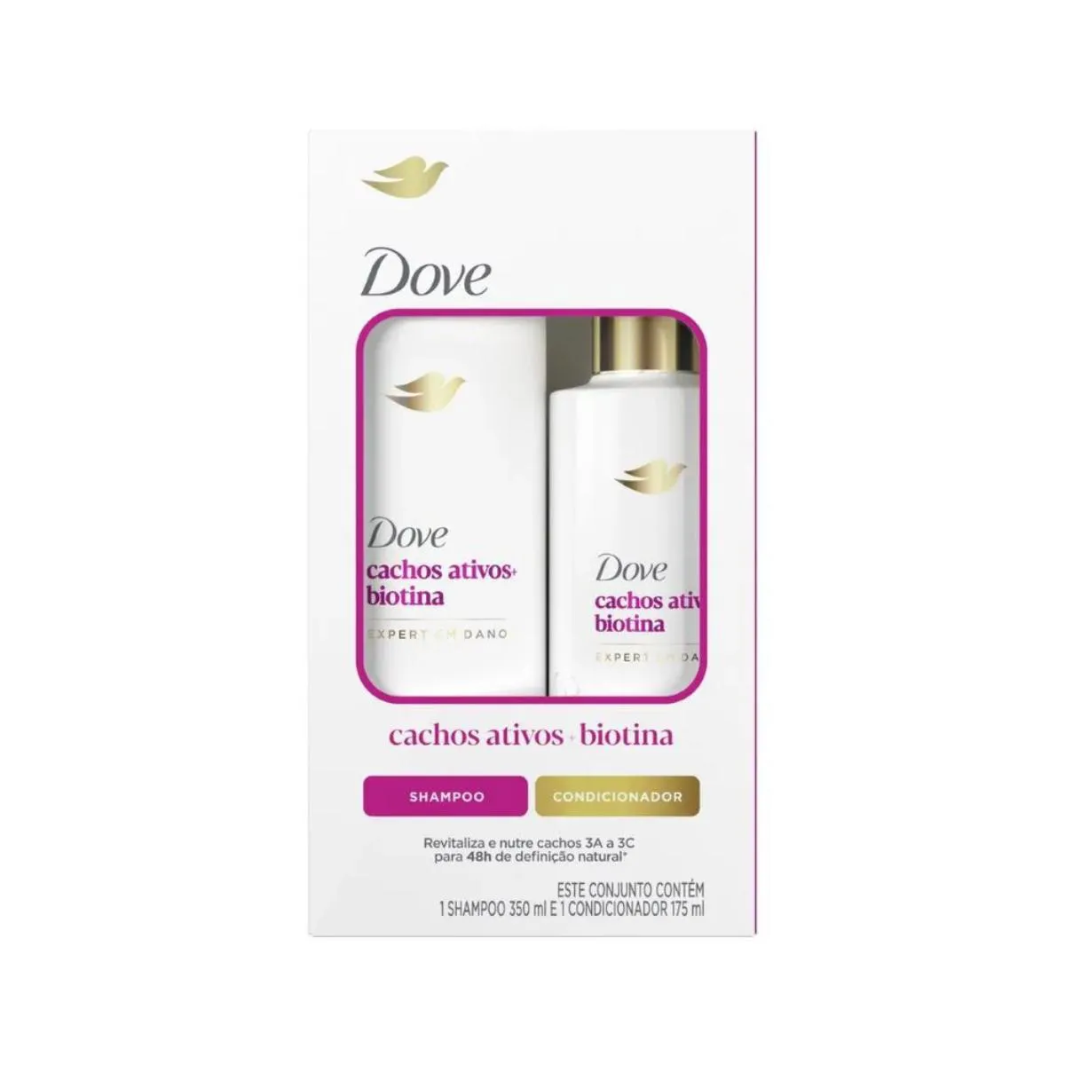 Kit Dove Expert em Danos Cachos Ativos +Biotina Shampoo 350Ml + Condicionador 175Ml