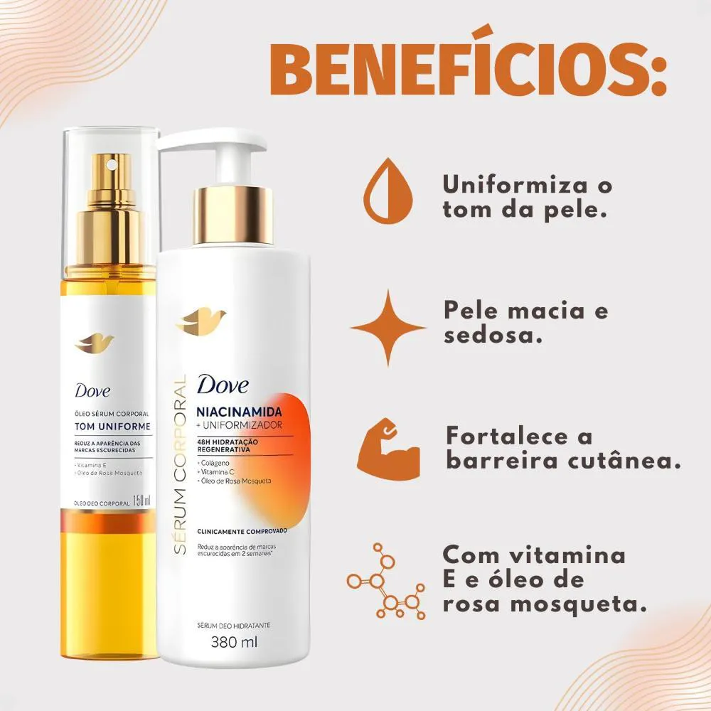 Kit Dove Tom Uniforme: Óleo Sérum Deo Corporal 150ml e Sérum Deo hidratante 380ml