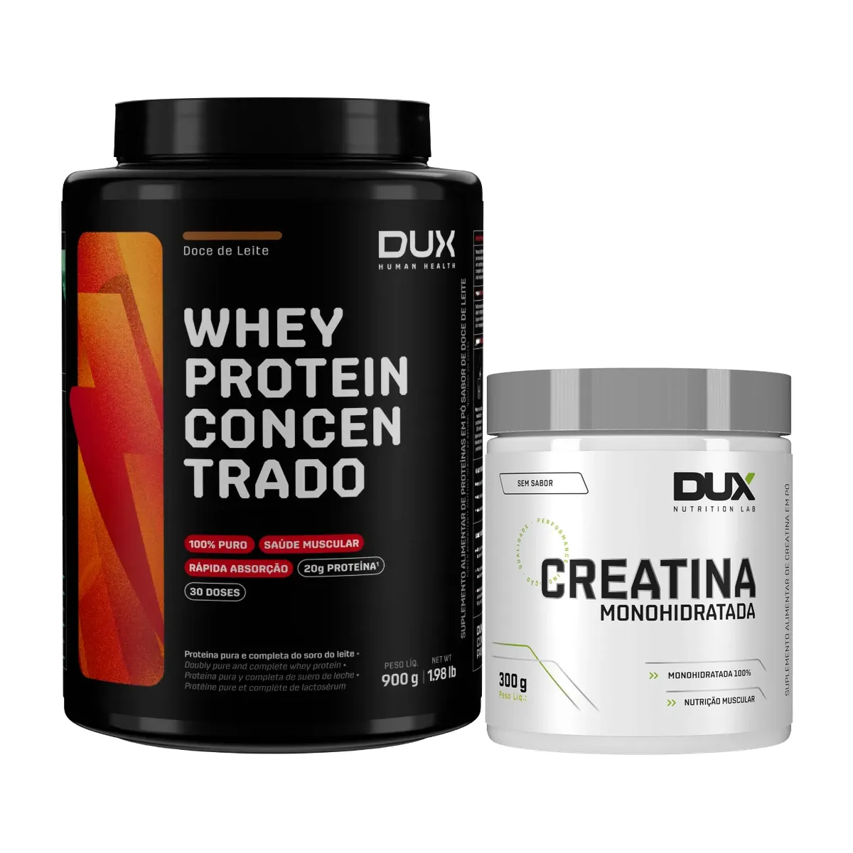 Kit Dux Whey Protein Concentrado Doce de Leite 900g + Creatina Monohidratada 300g